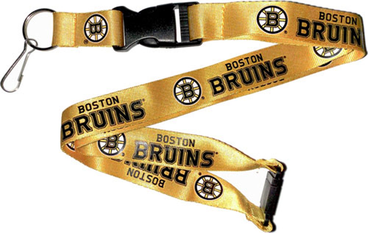 Keep your team pride close with the Aminco® Boston Bruins lanyard. Your favorite NHL® team’s logo and wordmark are printed all over this nylon, team-colored lanyard, showing everyone your Bruins spirit. A detachable buckle connected to the key ring easily allows you to separate your keys as quickly as Zdeno Chara scores a goal. A buckle at the top separates when the action intensifies with the Aminco® Boston lanyard.