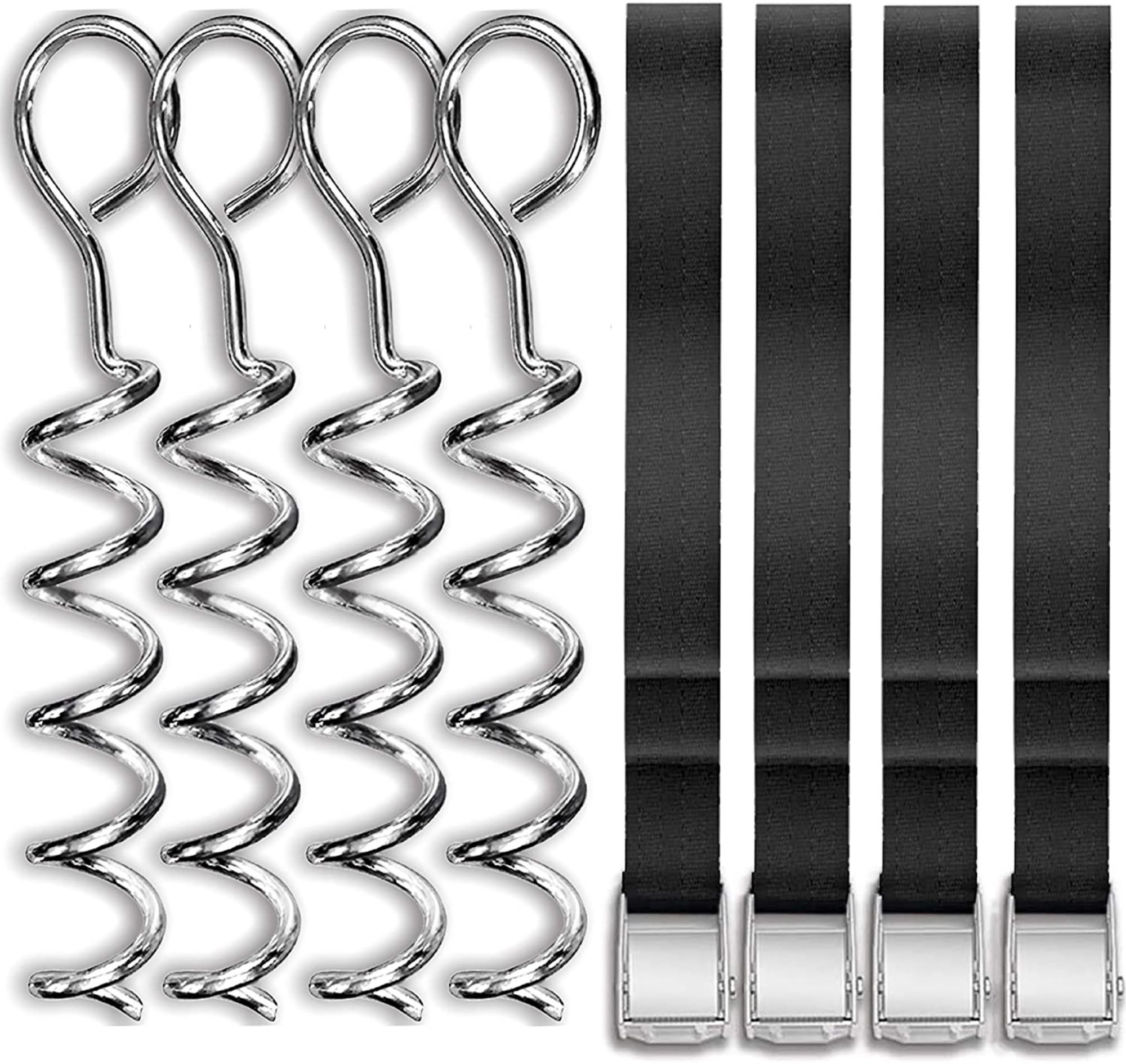 Multi-purpose spiral stakes perfect for trampolines and other outdoor equipment needing to be anchored down like sheds, swing sets, tables, firepits, and tents