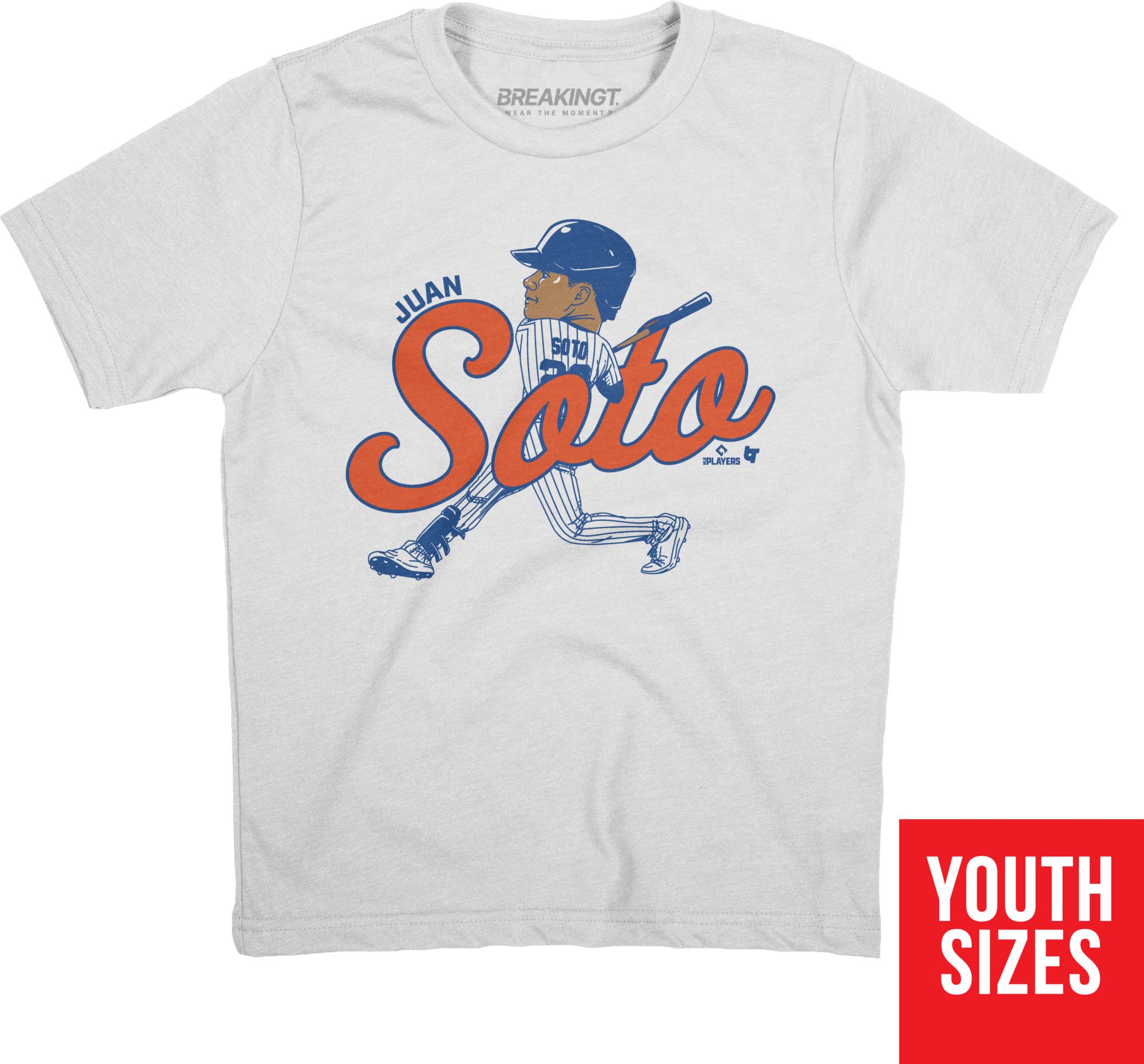 BreakingT Youth New York Mets Juan Soto Caricature White T-Shirt