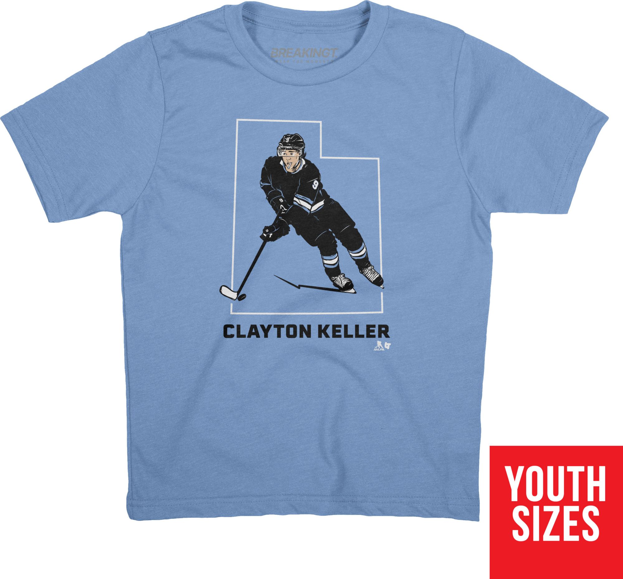 BreakingT Youth Utah Hockey Club Clayton Keller #9 Light Blue 'State Star' T-Shirt