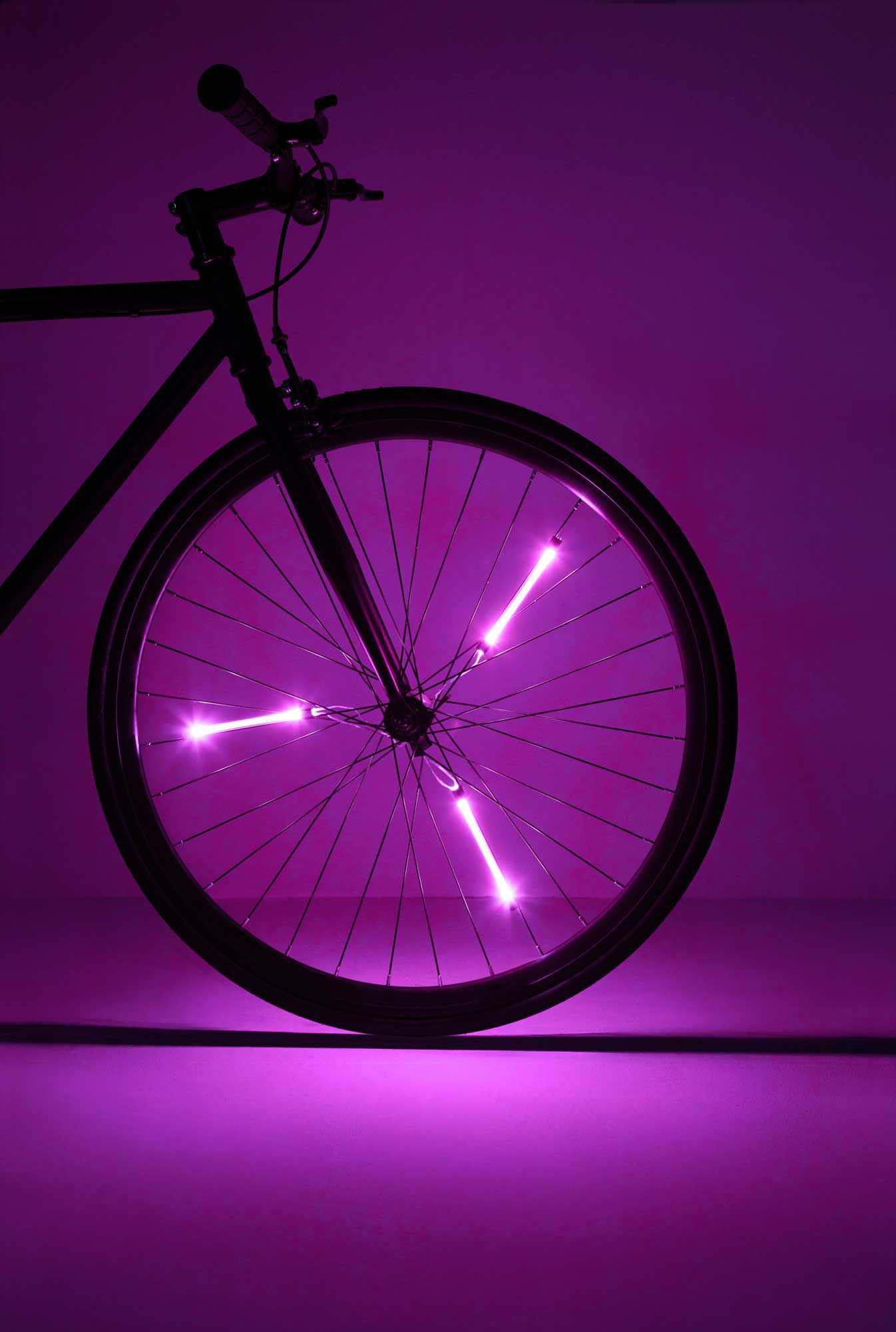 Light up your spokes with Spin Brightz! These LED tubes illuminate your bicycle wheel by creating a ring of color as you ride. Easy clip-on installation means you're ready to roll in seconds. Once installed, just select one of the 3 flashing options and you're good to go!