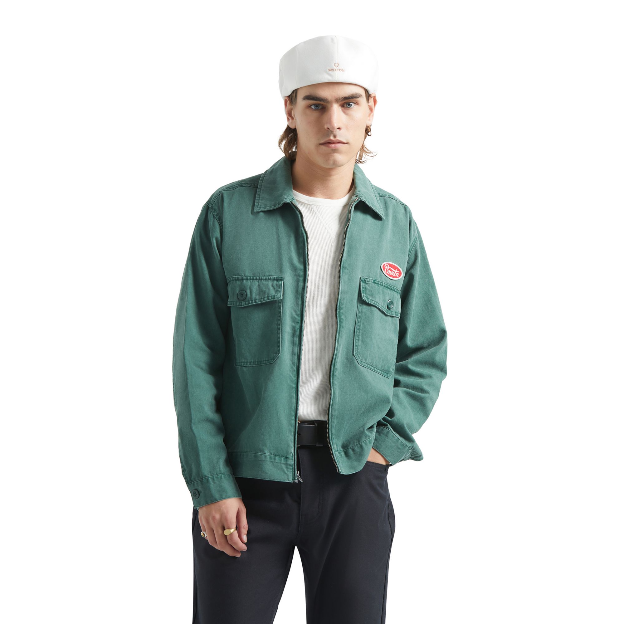 Function meets style in this garage-inspired essential. Crafted from 100% cotton twill with heavy wash treatment, the Trademark brings authentic workwear energy with modern wearability. Center front metal zipper and chest patch pockets provide practical details, while the Parsons patch adds signature branding. Back adjustable tabs at the waistband let you customize the fit, and the relaxed silhouette works perfectly for layering.