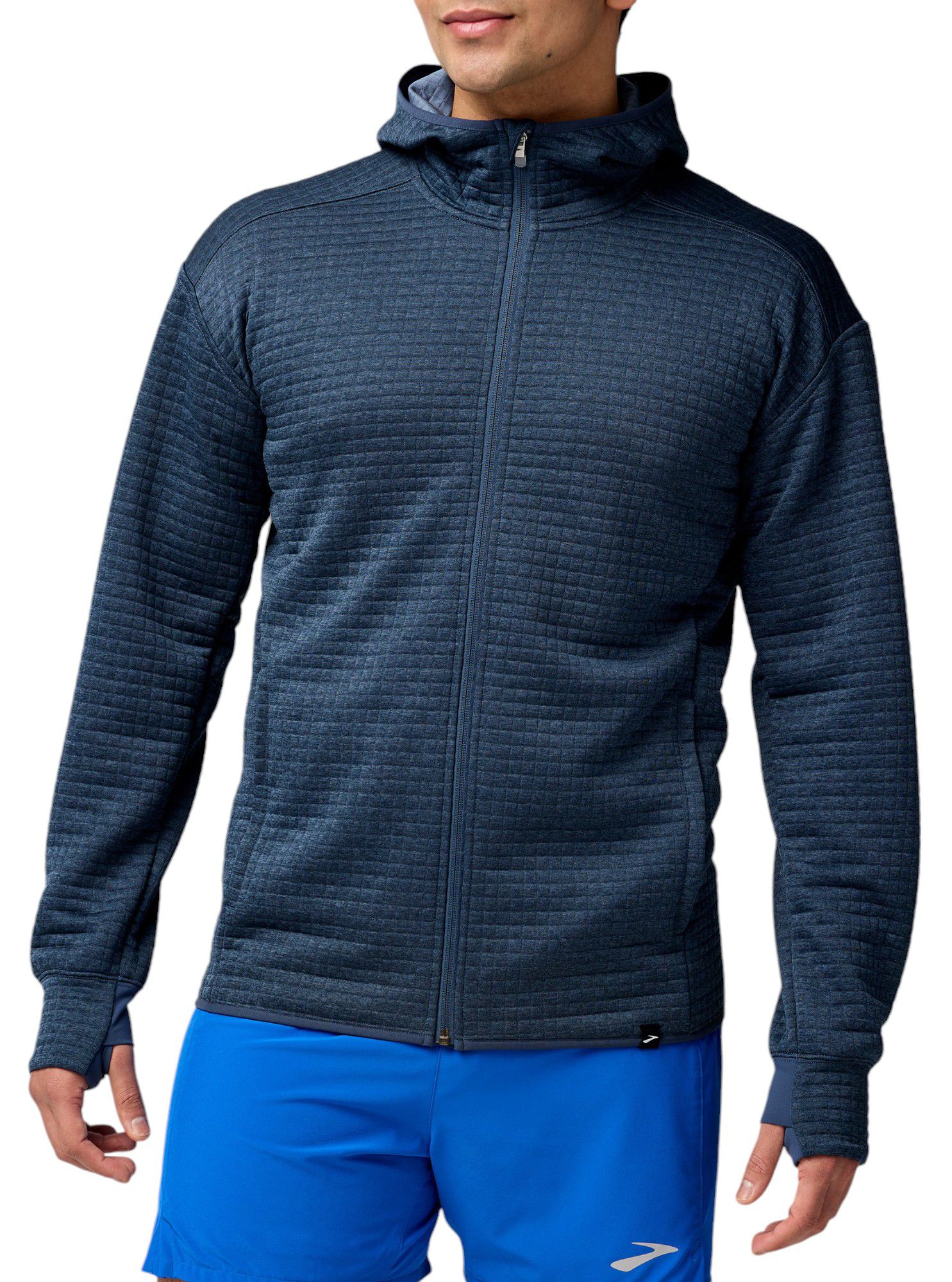 [This review was collected as part of a promotion.] I am 6’6” 195lbs and I bought a Large hoping it would be long enough, but still slim. I like these style jackets for the extra long sleeves (with the thumb hole that I won’t be using). The arm length is almost right, but could be a tad longer like some of the other running jackets. Body wise it sits just below my belt line. The product looks and feels awesome though. Props to Brooks for making a sleek, minimal branding jacket! All in all just a tad too short, I will be trying an XL to see if the sleeves and body get slightly longer….