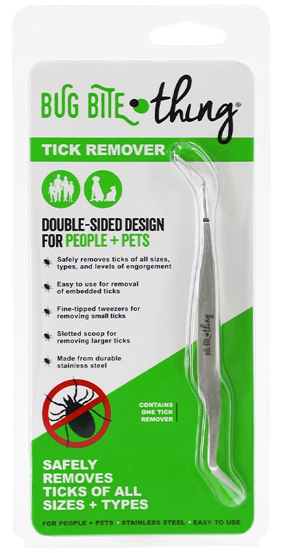 The Bug Bite Thing® Tick Remover safely removes ticks of all sizes, types, and levels of engorgement using our patented double-sided design that works on both people and pets. Prompt and proper tick removal is a critical step in reducing your risk of tick-borne disease transmission.