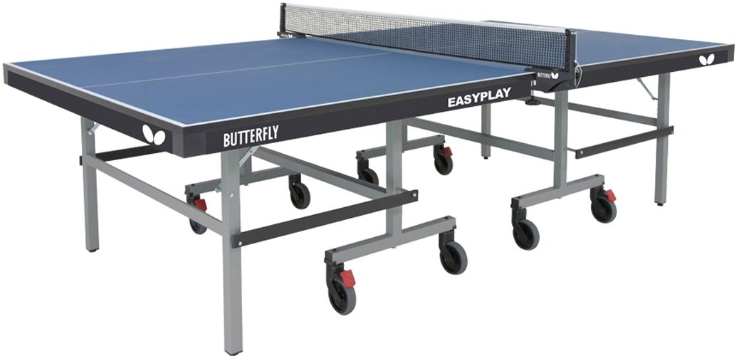 Set yourself up for exciting table tennis games for years to come with the Butterfly® Easyplay 22 Table Tennis Table. This table and net set is designed for heavy duty use with a 22m top that provides good bounces for competitive play. The adjustable feet ensure that you can create a level playing surface and the space-saving design allows for multiple table storage at clubs and institutions. Whether you’re looking to add entertainment to your home or institution, you’ll get plenty of hours of enjoyment out of the Butterfly® Easyplay 22 Table Tennis Table.