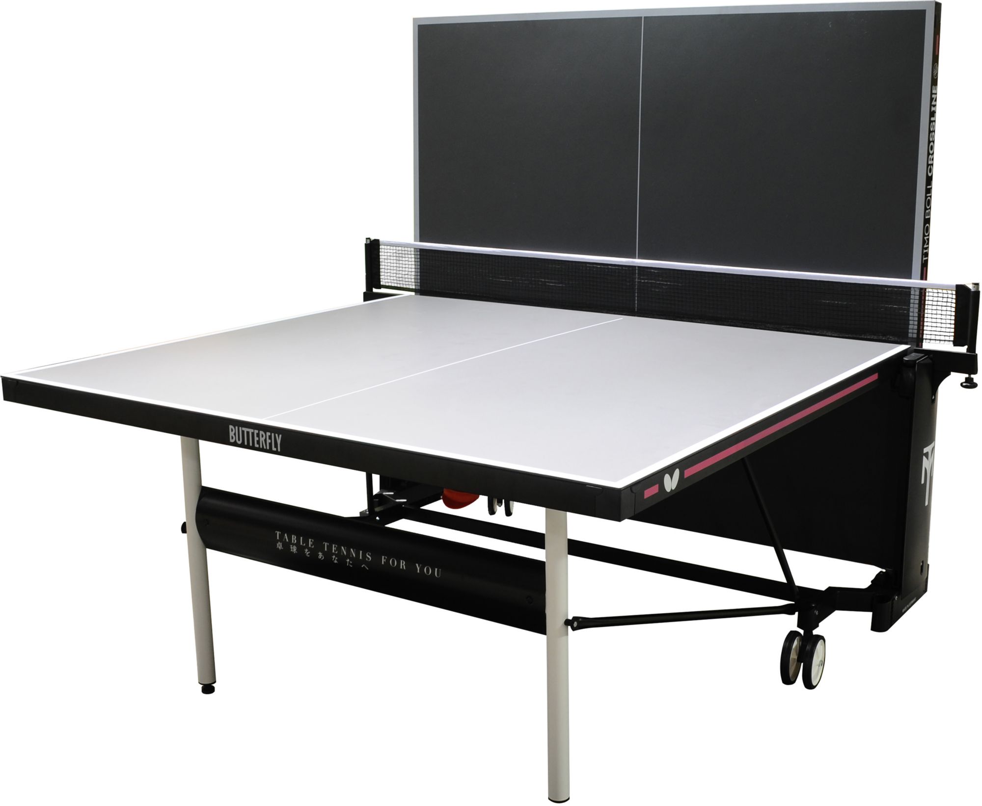 The Butterfly Timo Boll Crossline Outdoor table tennis table is the perfect addition to your patio, garden, or garage! With a stylish new grey tabletop, a 5mm melamine playing surface, and easy transportation, this ping pong table is ideal for family time outside. Height adjusters on the table feet and a compact undercarriage with swiveling wheels make it simple to set up anywhere and let the games begin! Utilizing the SMS system makes opening and closing each side of the table a breeze. Included with the table is an adjustable Primus Net Set, allowing players to get the net tension the same as any top-of-the-line tournament table! The Timo Boll Crossline Outdoor Table ships at 154 pounds, but this regulation-size table is just 142 pounds fully assembled and ready for play. This table has a 3-year warranty and a 10-year warranty on tabletop! Good for beginners all the way to advanced players, this is fun for the whole family! Storage space for this table is 62" X 28" X 73".
