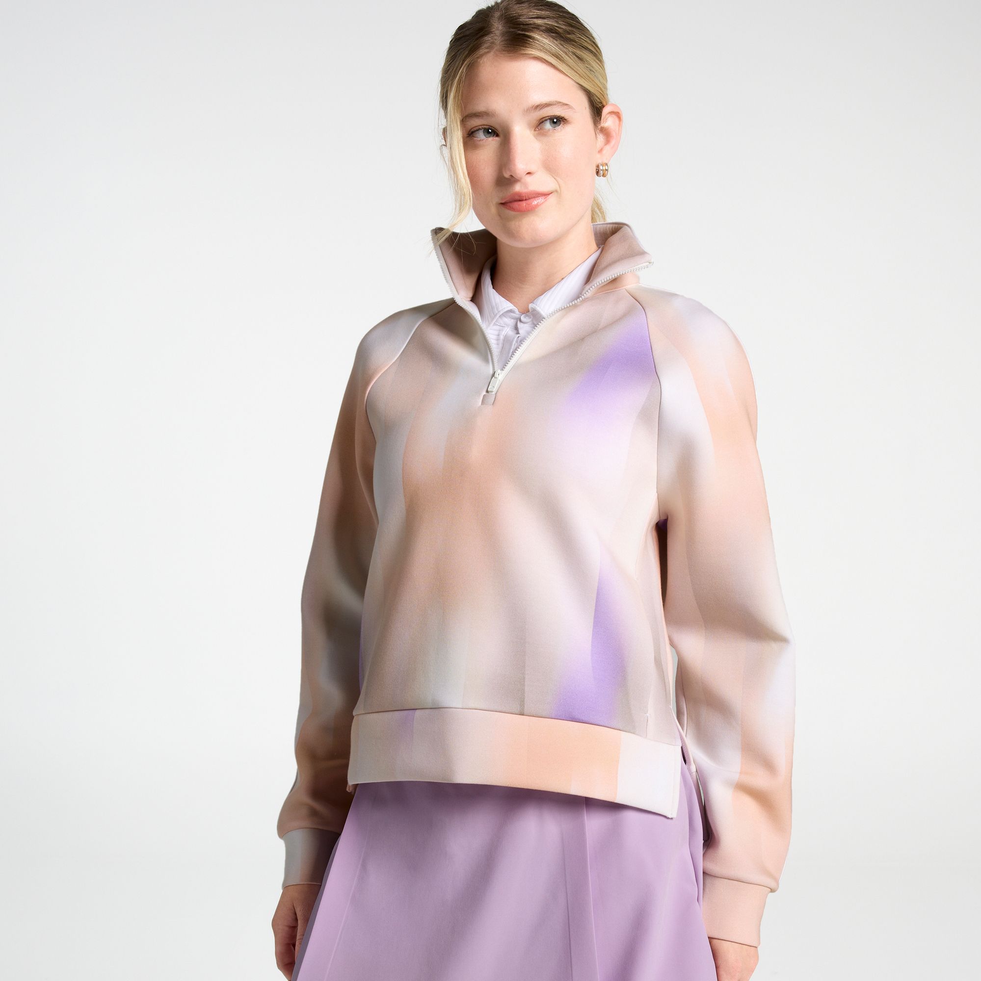 Elevate your look on the green with the CALIA Women's Golf Soft Scuba 1/4 Zip Sweatshirt. Designed with a chic mock neck and soft scuba fabric, this pullover combines luxurious comfort with effortless style. Perfect for the course or casual outings, the modern fit ensures you'll look and feel your best wherever the day takes you.