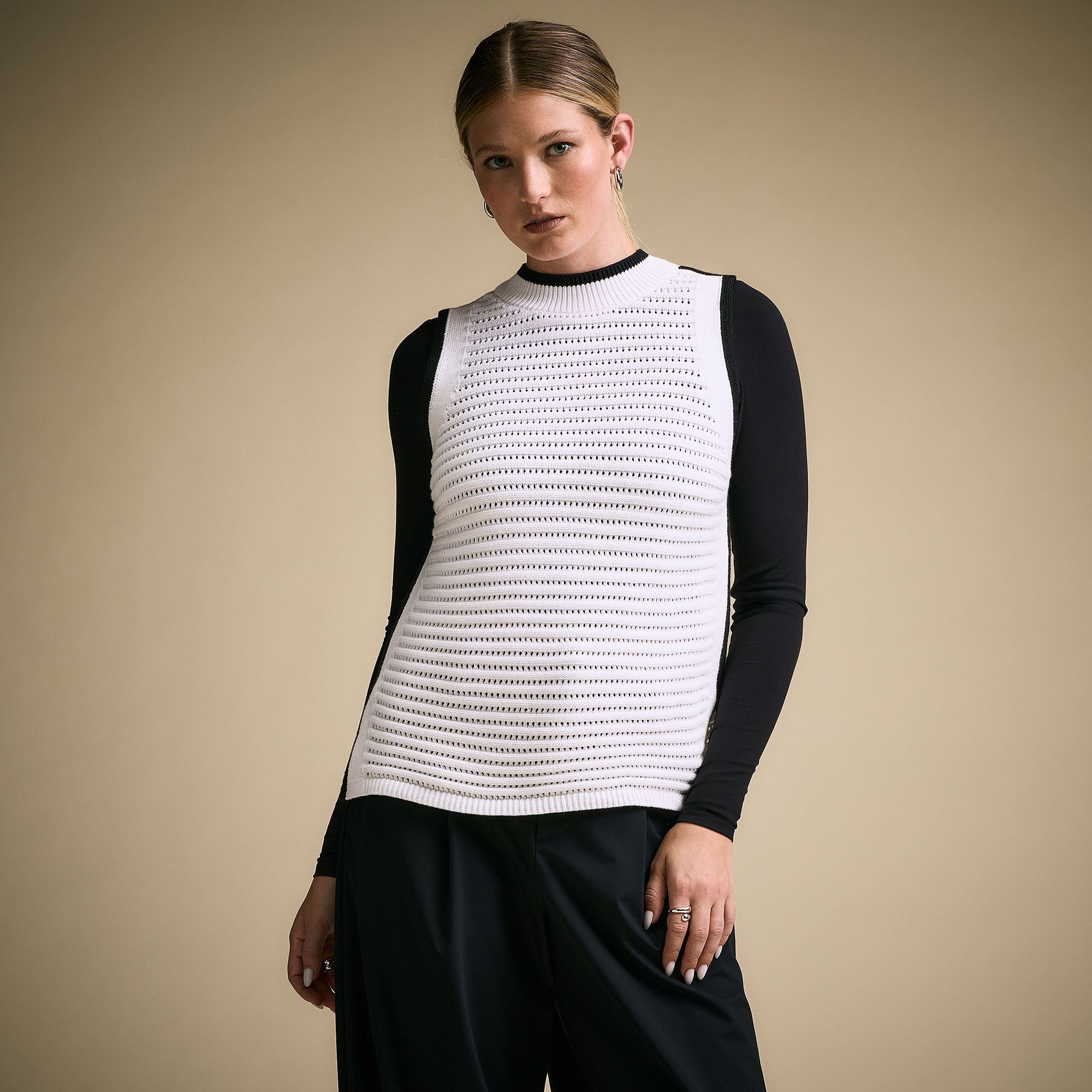 • Sleeveless design is perfect for layering