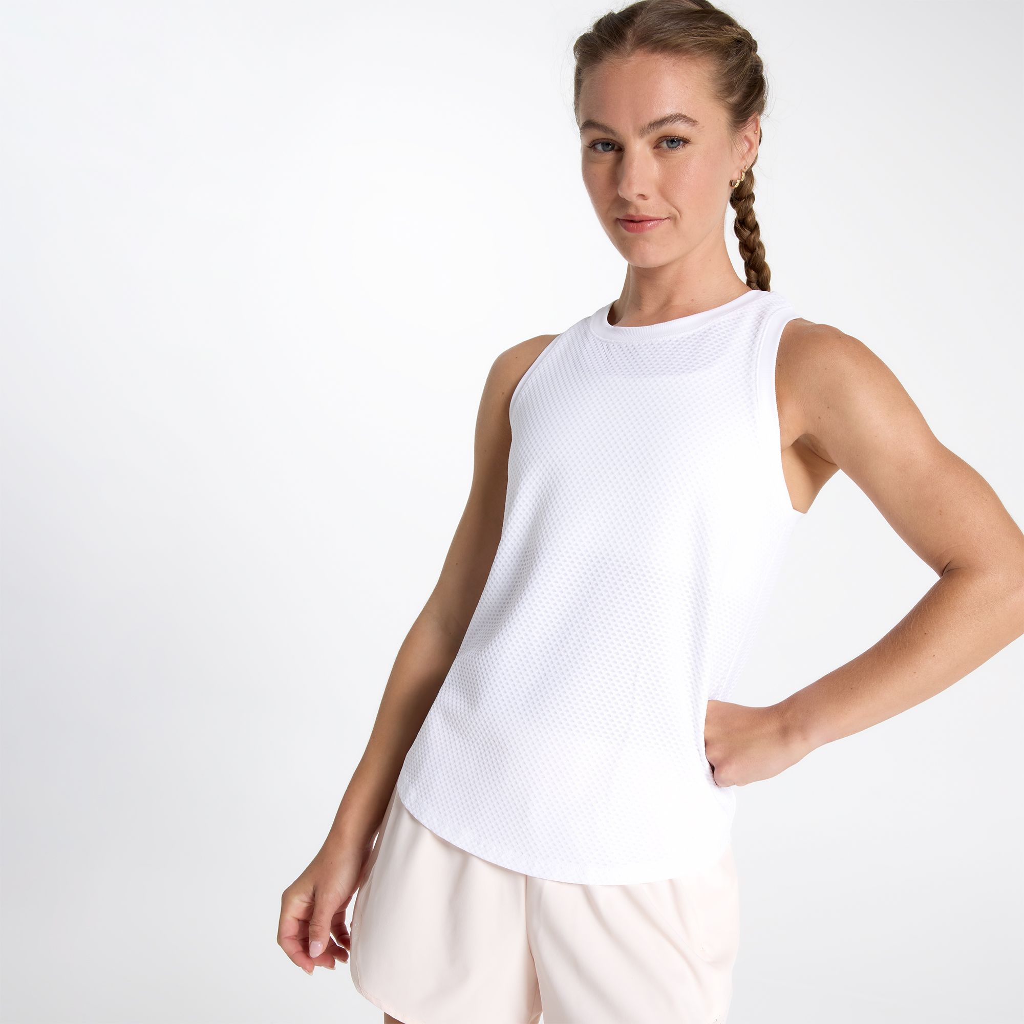 Reliable, comfortable, and easy, reach for this tank for your next appointment at the studio. While it looks like a regular tank top, the slight racerback cut to the straps helps free your arms for better movement through each pose.