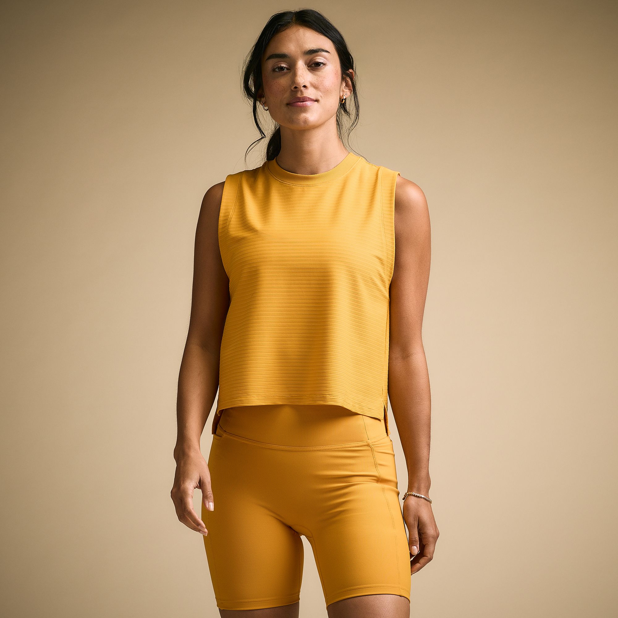 The CALIA Women’s Renew Cropped Muscle Tank is designed to keep up with your active lifestyle while delivering effortless style. Its relaxed fit and cropped silhouette provide comfort and freedom of movement, while odor-inhibiting and sweat-wicking technologies ensure you stay fresh and dry through every workout. With UPF 50+ sun protection built right in, this tank is a perfect companion for outdoor activities, keeping you covered where it counts.