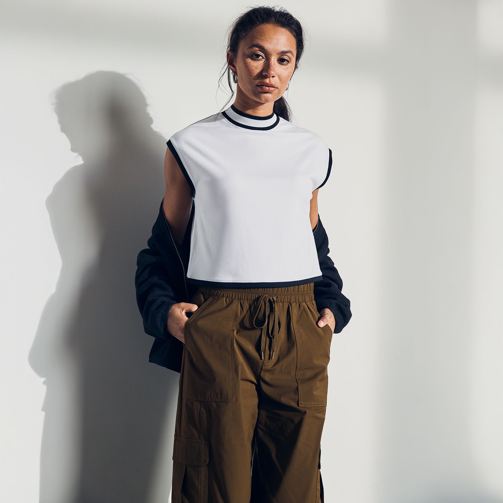 Stay cool and confident in the CALIA Women's Ribbed Cropped Mock Neck Tank, where sleek style meets performance. Designed with breathable fabrication, moisture-wicking technology, and a chic cropped silhouette, this tank moves with you from the toughest workouts to your busiest days.