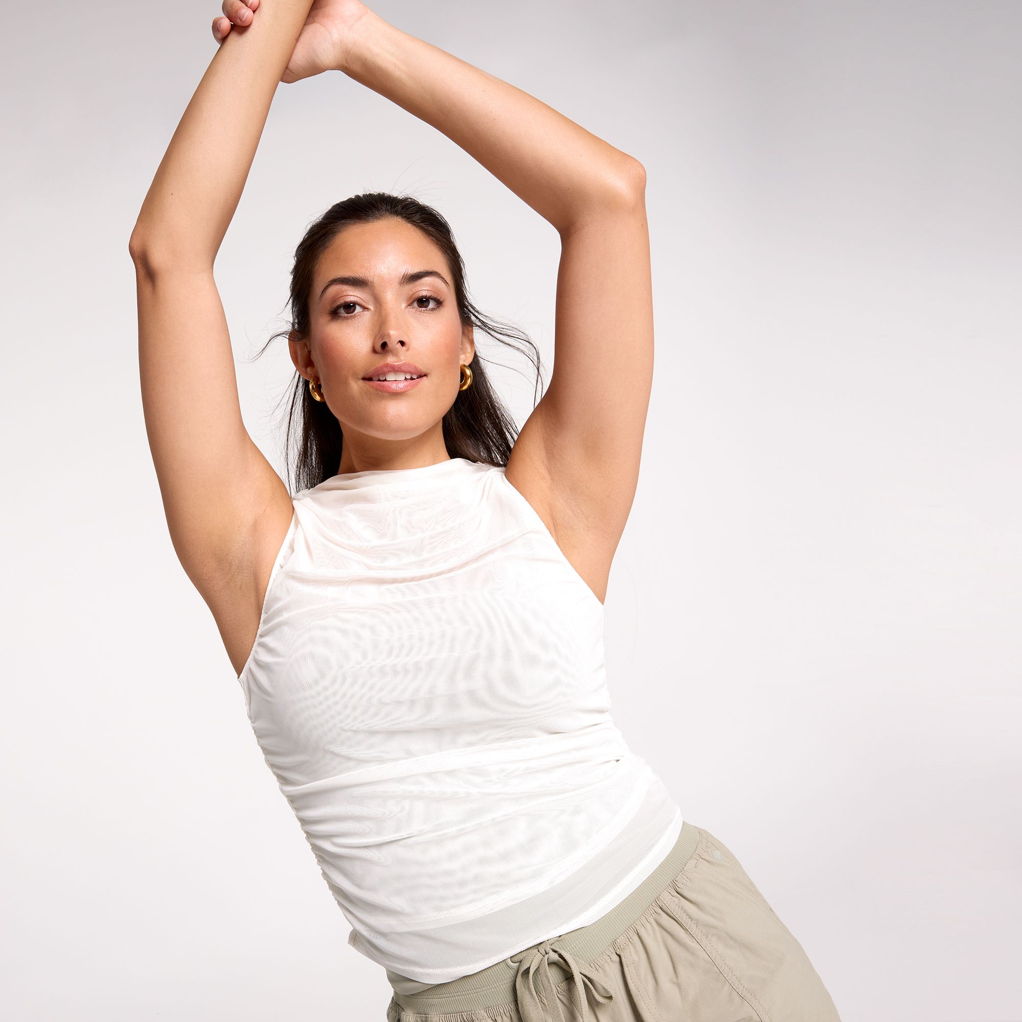 Elevate your workout wardrobe with the CALIA Women's Ruched Mock Neck Tank, where sleek, flattering design meets unbeatable comfort. Crafted from breathable CALIA Power Mesh and with 4-way stretch that flexes and moves with you, you'll reach for this fitness tank again and again.