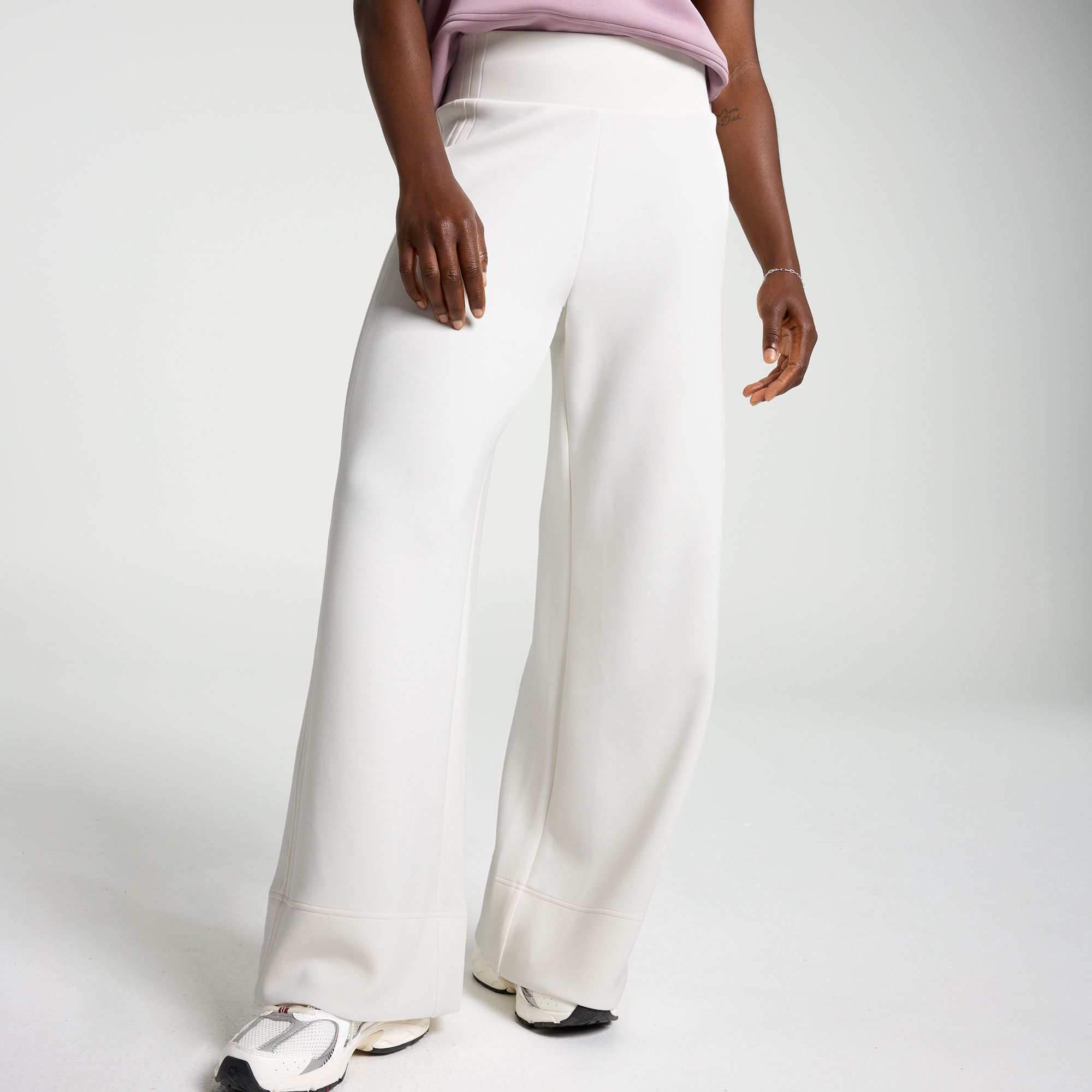 The pant is advertized as more of a lounge sweat pant, but I have been able to dress them up due to the unique pleats sewned into the each outside of the pant. This pic does not due the product justice as the color is creamy and the side pleats are so different. I wear with a fun sweaters to make it a comfortable casual business outfit.