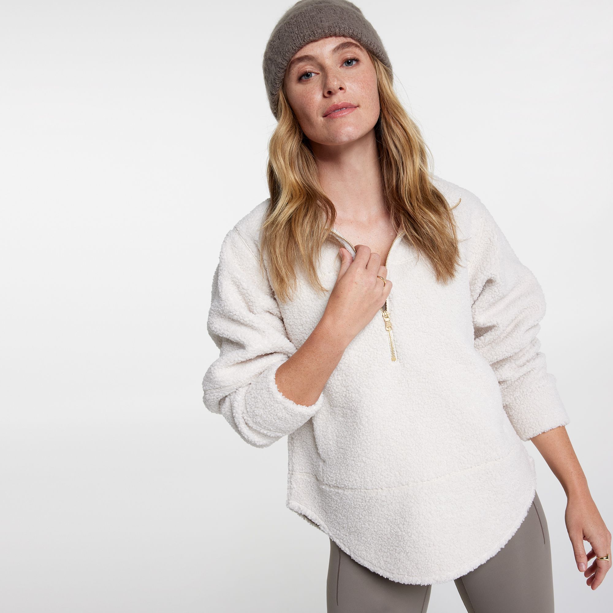A layer-ready pullover in soft sherpa fabric. The 1/2 zip is made for transitional weather: leave it open to vent heat, then zip it up for neck coverage when temperatures drop.