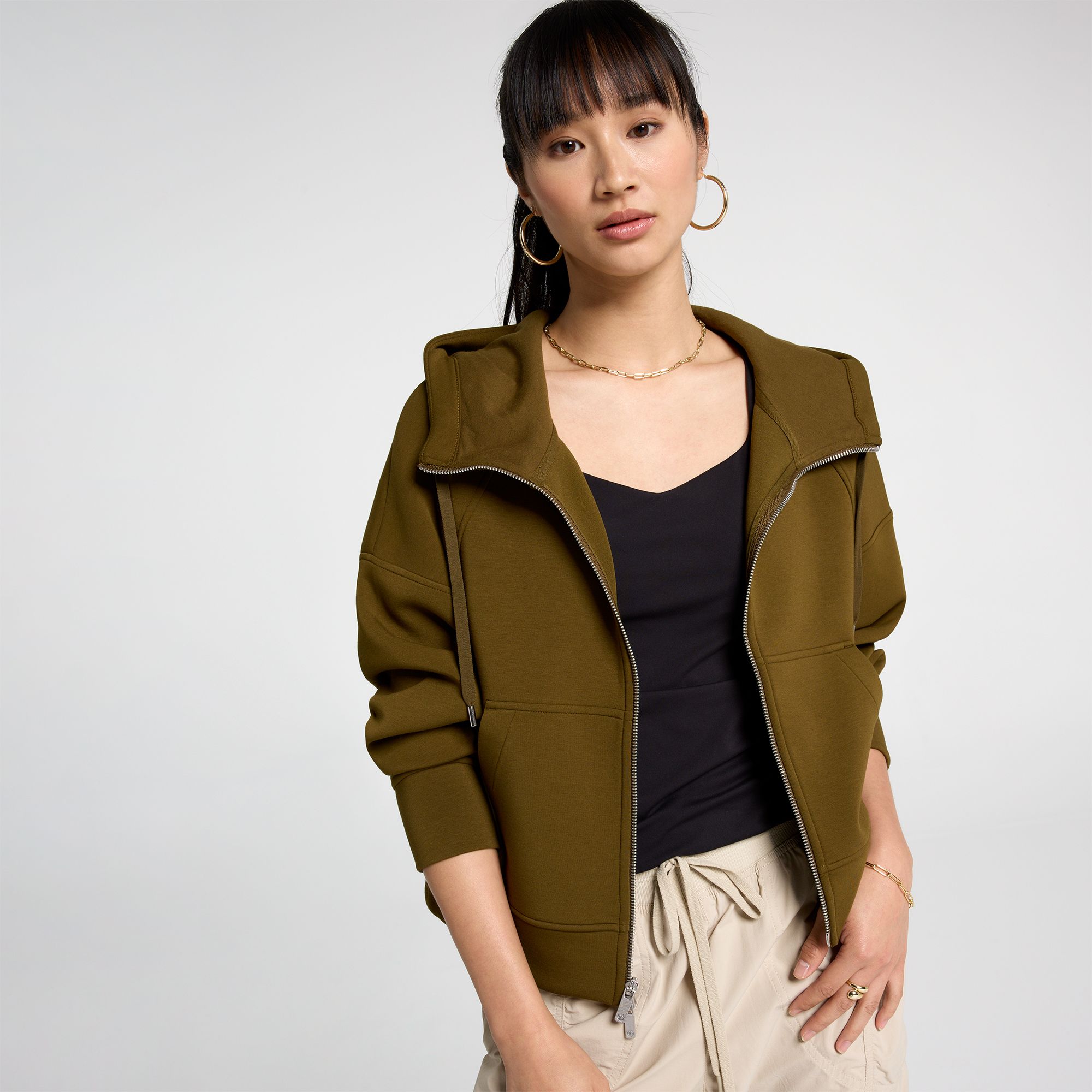 Elevate your everyday style with the CALIA Women's Soft Scuba Hooded Full Zip. Designed with silky-smooth scuba fabric, this jacket offers unparalleled comfort and a polished look for casual outings or post-workout wear. Wrinkle-resistant and effortlessly chic, it’s the perfect layer to keep up with your busy lifestyle.