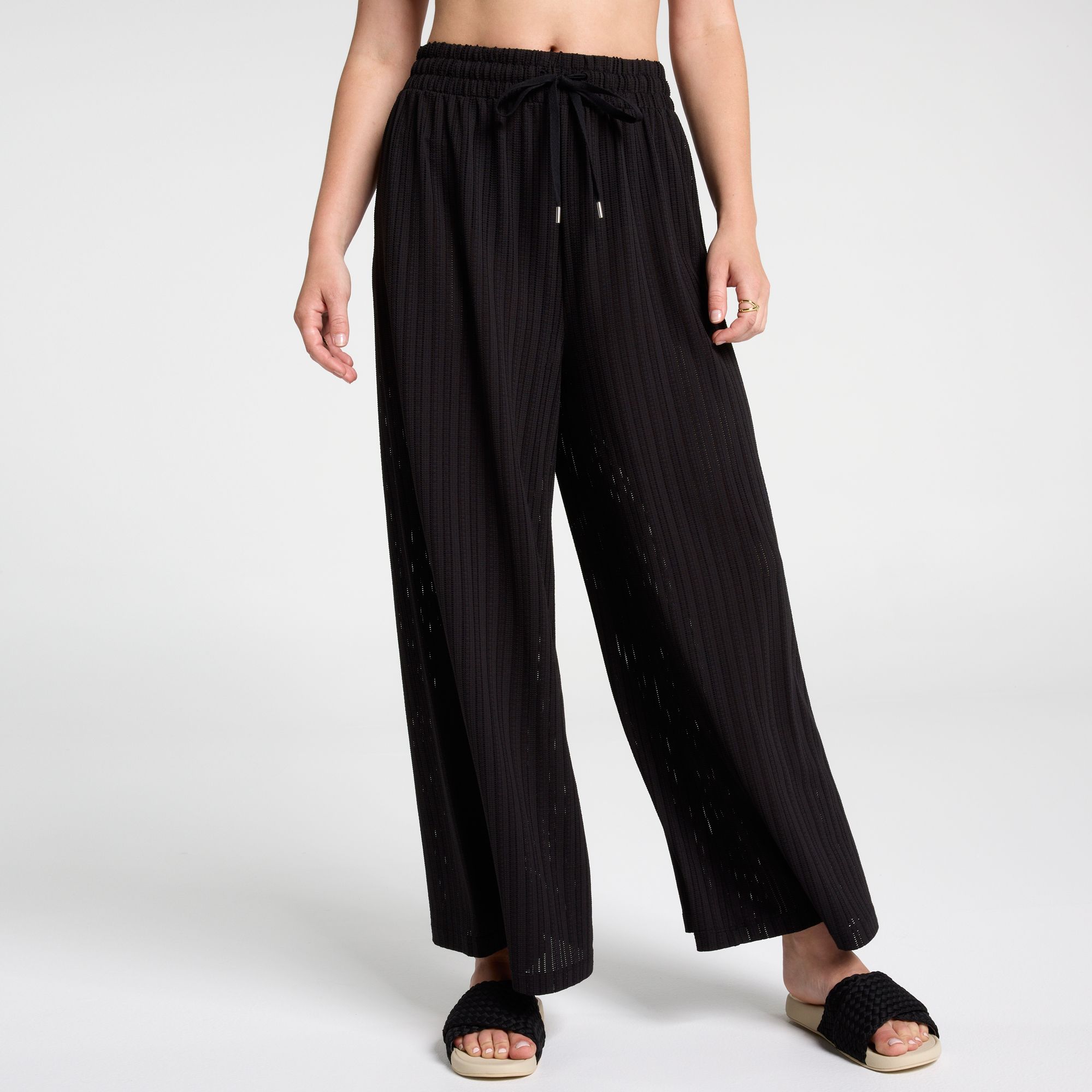 Elevate your casual style with the CALIA Women’s Wide Leg Knit Cover Up Pant, designed for effortless comfort and versatility. The relaxed fit and soft knit material make it perfect for lounging by the beach or transitioning to your next adventure, while UPF 50+ technology provides added protection from the sun’s rays. Whether you're layering over your swimsuit or pairing it with your favorite top, these pants combine ease and elegance for any warm-weather outing.