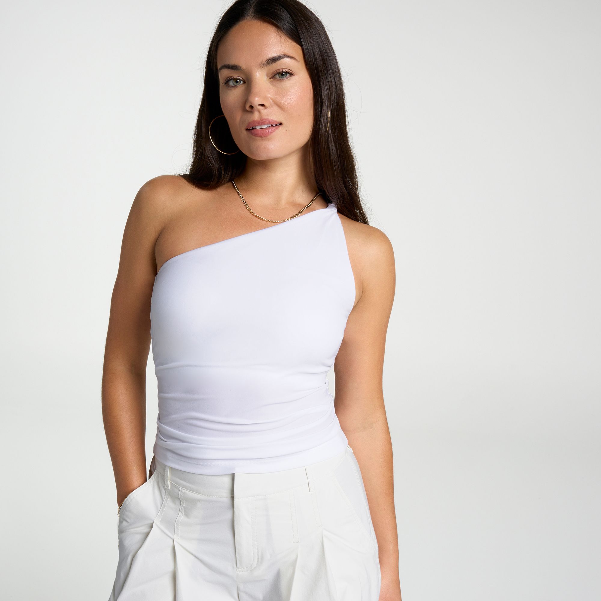 Elevate your workout wardrobe with the CALIA Women's Twist One Shoulder Support Tank. Designed with a sleek one-shoulder silhouette, this tank delivers a bold and confident look while maintaining comfort with its regular fit. Featuring a built-in shelf bra for added support, it’s perfect for your next fitness session or athleisure ensemble.