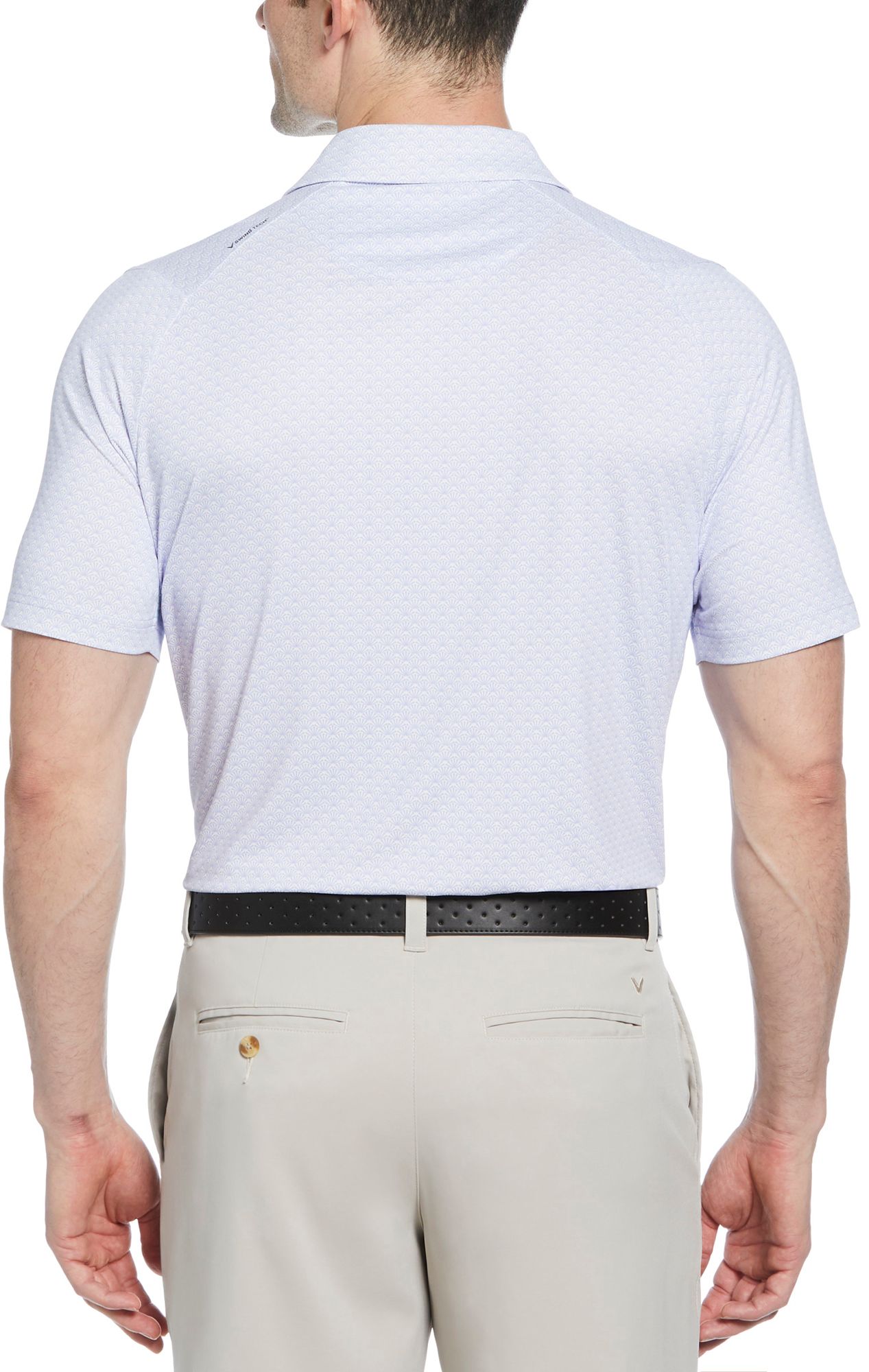 Covered with the trademark Callaway chevron, this men’s golf shirt will add sophisticated style to your athletic outfits. Great for everything from competitive rounds to everyday errands, this versatile, easy-care Callaway shirt is crafted from a lightweight single knit fabric. It has added stretch and Swing Tech™ technology to help ensure a comfortable fit and a full range of motion. Built-in sun protection helps to guard against damaging UV rays, while Opti-Dri™ transfers moisture away from your body to help keep you dry. For an eco-friendly twist, the golf polo shirt is made from 90% recycled polyester.
