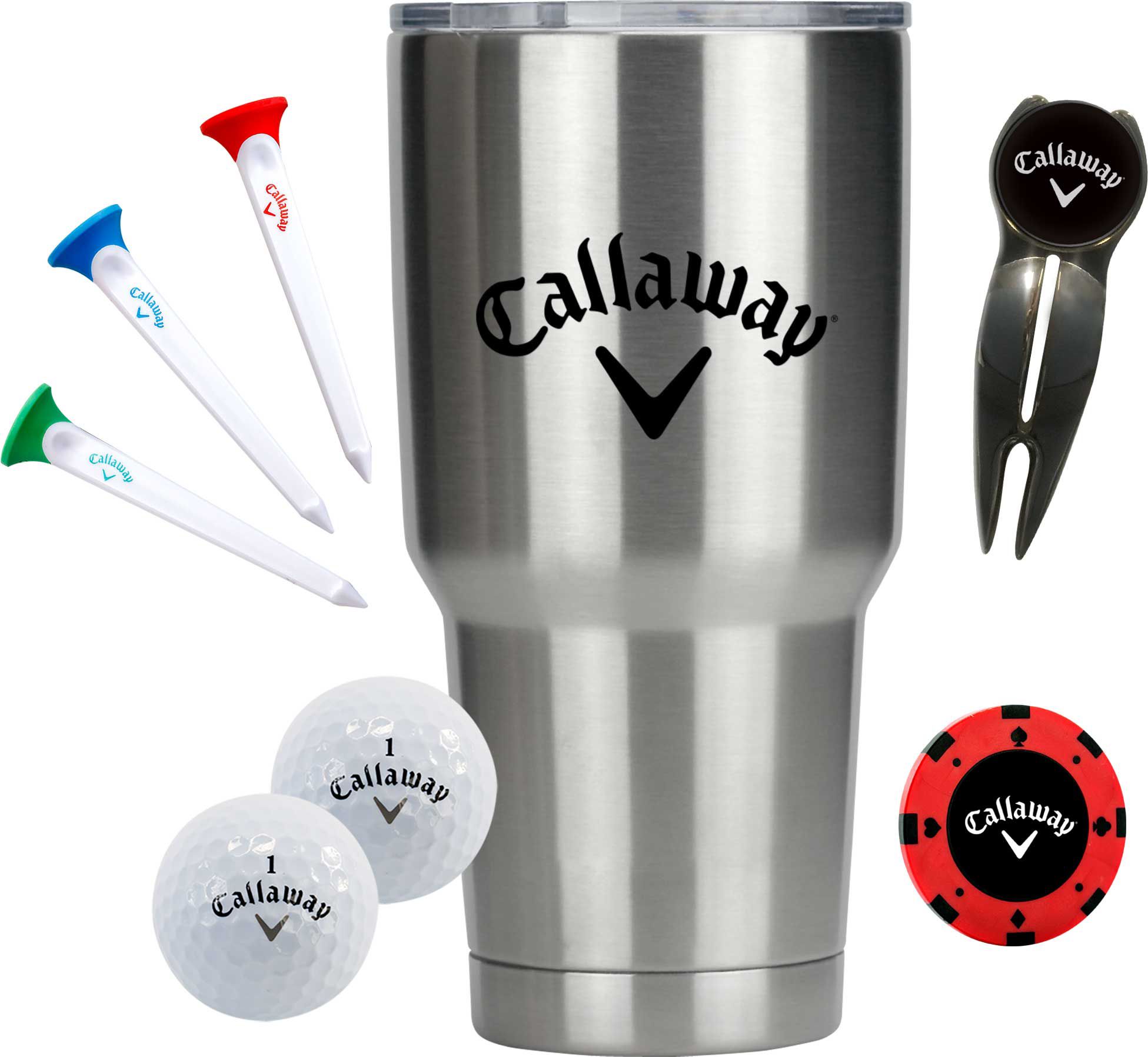 Prepare your favorite golfer for the links with the Callaway Tumbler Golf Gift Set. The 30 oz. stainless steel tumbler is designed to maintain the beverage’s temperature for hours and features a beveled bottom for security. Two Callaway Warbird Golf Balls feature a 2-piece construction to create the optimal blend of distance and accuracy. Three Callaway Par-Tees, a Divot Tool and Poker Chip ball marker enable tee-to-green convenience.
