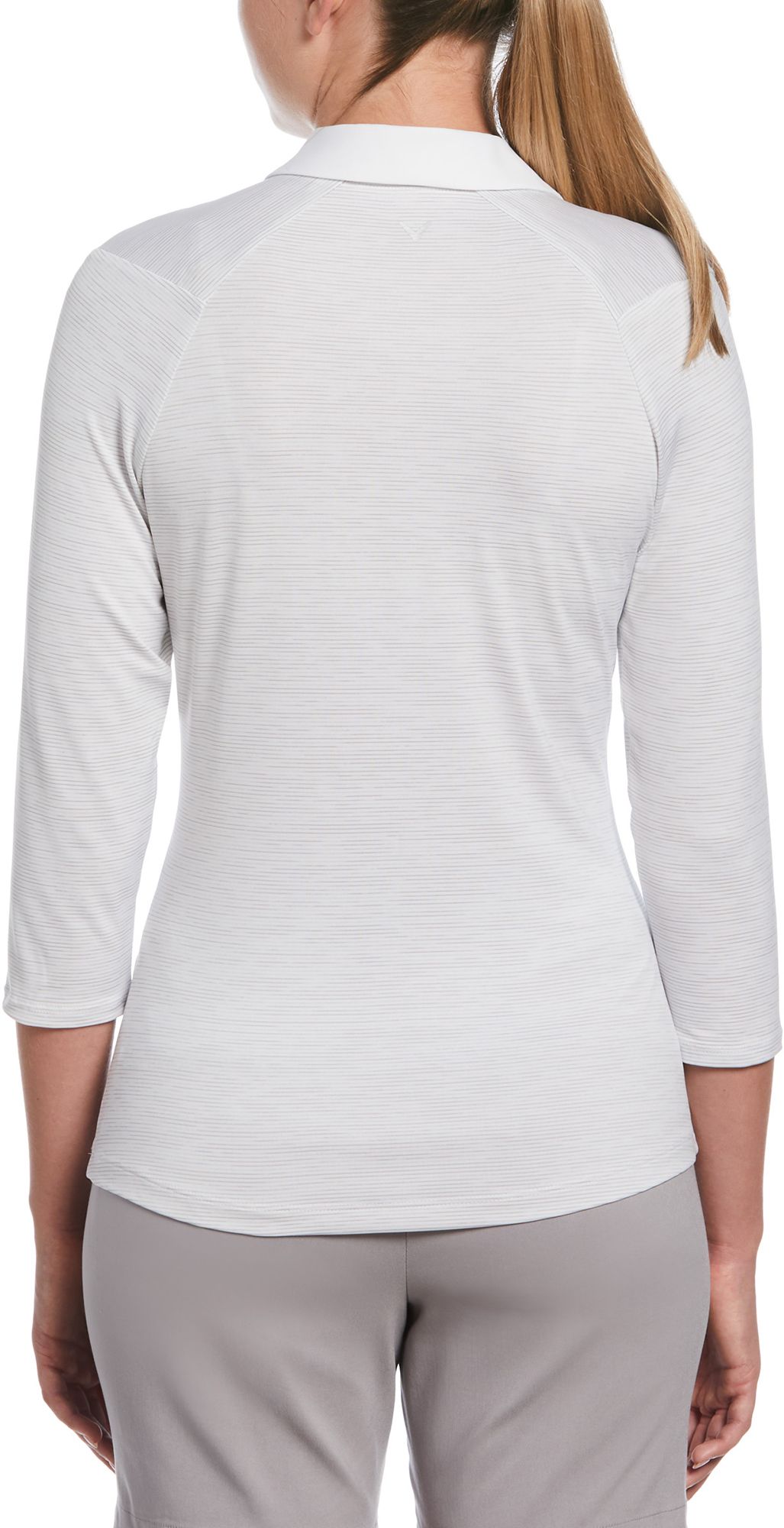 This Callaway Apparel's golf polo delivers style and protection in a soft and stretchy jersey fabric. The 3/4-sleeve length provides comfortable coverage with built-in UPF 50 to safeguard against the sun's harmful rays. Opti-Dri™ technology in this golf top wicks away sweat so you can stay dry while you play, and SwingTech™ technology helps you enjoy a full range of motion for a smooth swing every time.