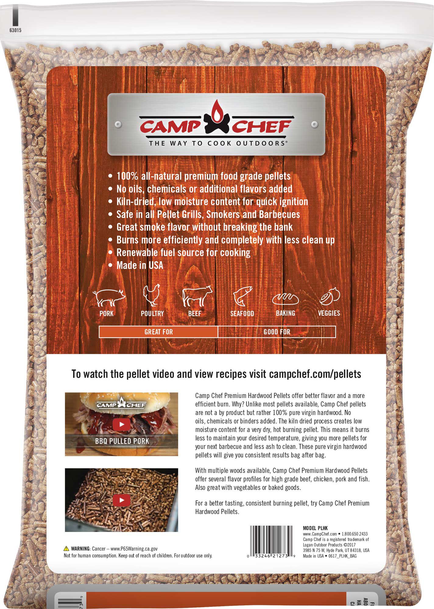 Add a rich, smoky bacon flavor to your favorite meats with the Camp Chef® Hickory Premium Hardwood Pellets. Made with 100% natural, virgin hardwood, these pellets burn hot and very dry for easier temperature control during cooking with less ash. Hickory pellets pair best with meats like beef, pork and poultry; not suitable for fish.