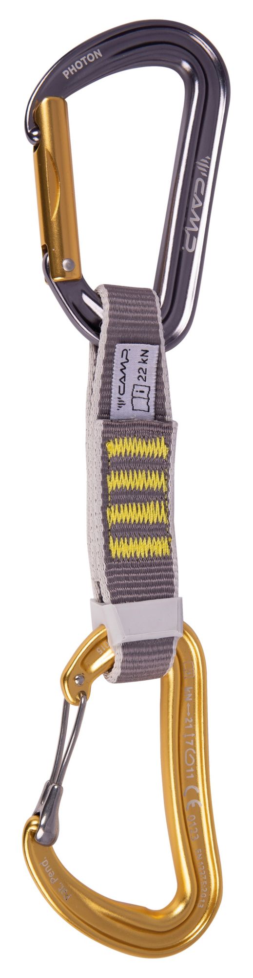 • Equipped with a Photon straight gate carabiner on the bolt end and a Dyon KeyWire carabiner on the rope end
