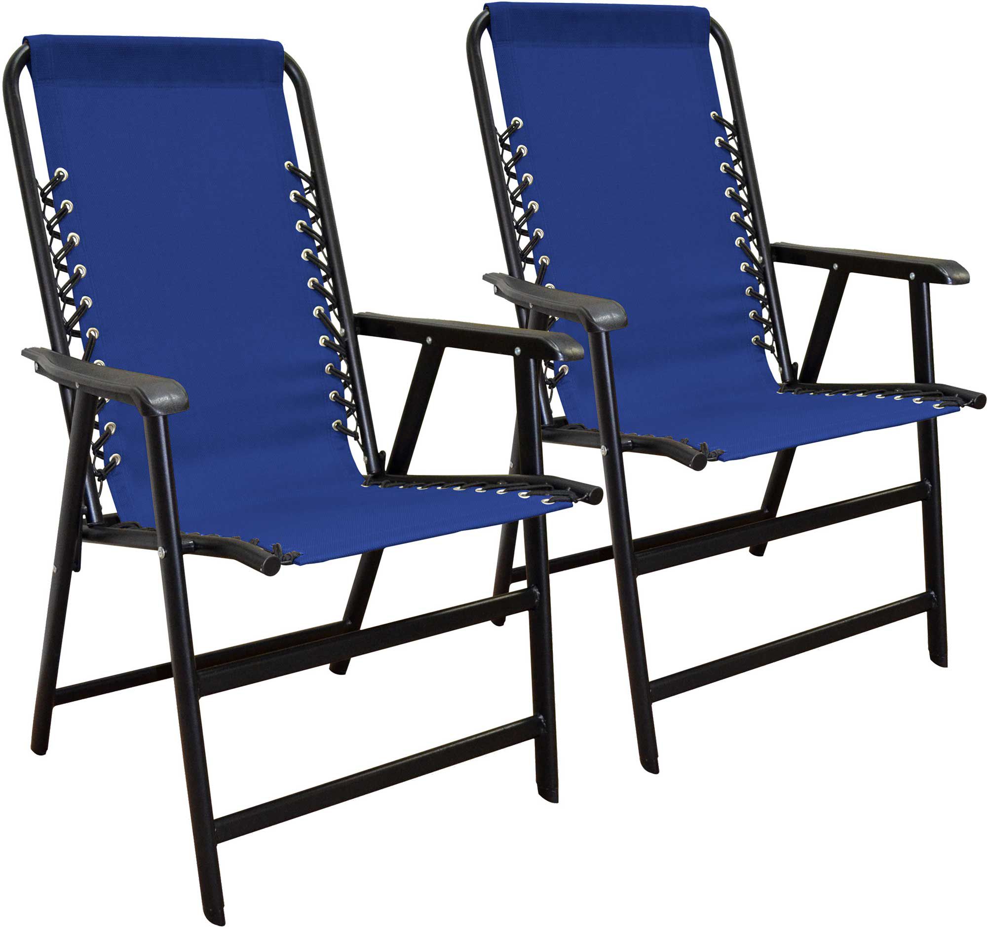 Kick back and relax with the Caravan Sports Suspension Folding Chair 2-Pack. This deluxe deck chair is designed for comfort and convenience, featuring a double bungee system and folding design. It has durable outdoor-grade Textaline fabric and a sturdy steel frame with rust-resistant coating to stand up to years of use.