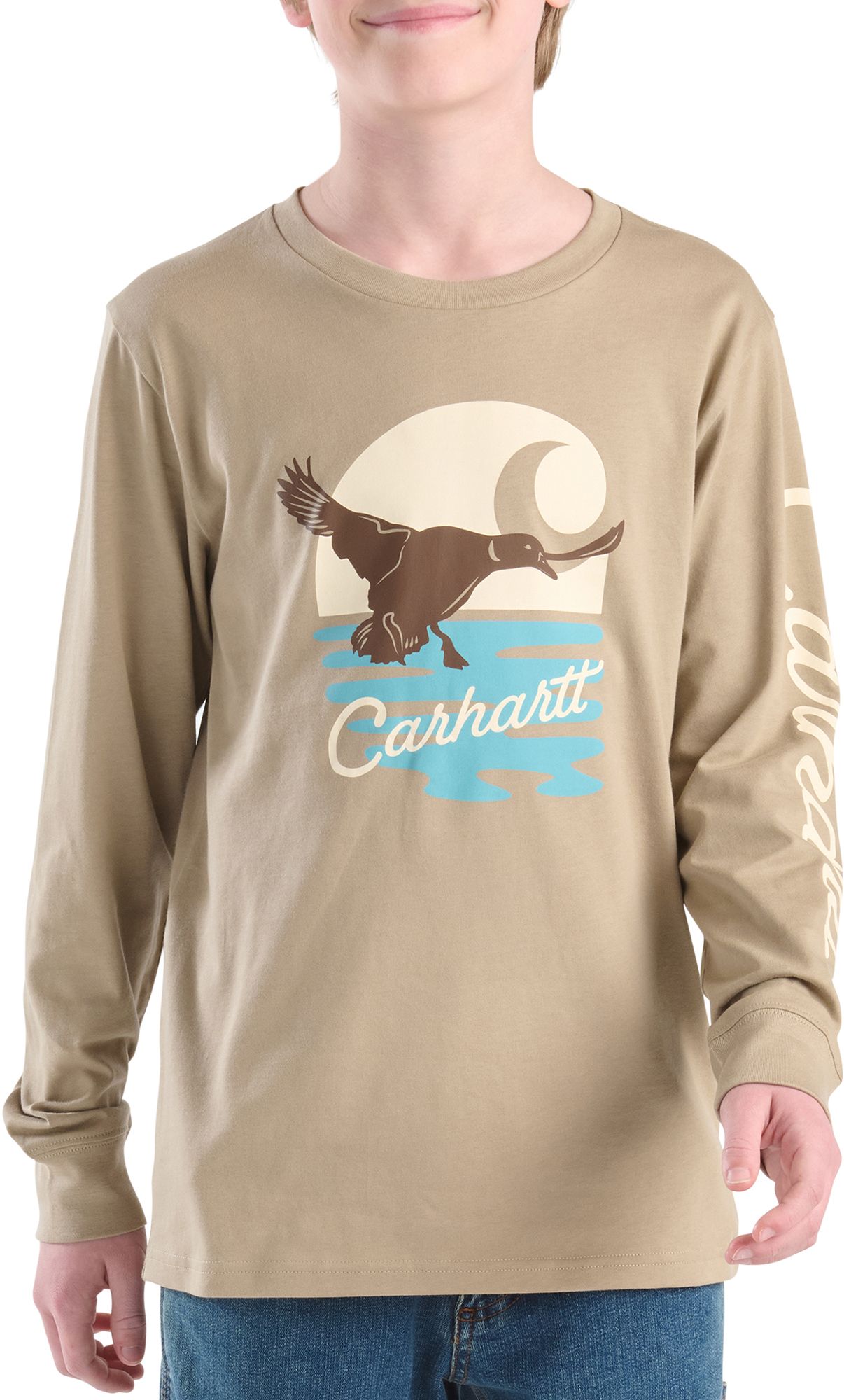 If it looks like a duck and flies like a duck, it's got to be this boys' long-sleeve t-shirt. Made from soft, durable cotton with the toughness and dependability of Carhartt, this one does comfort right. It has an easy, relaxed fit with side seams that minimize twisting and a tagless neck label.