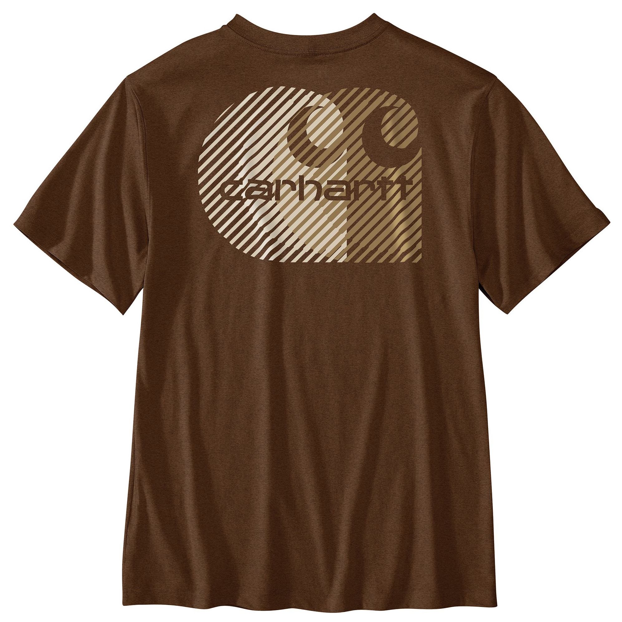 Carhartt toughness with this men's graphic short-sleeve tee featuring a Carhartt "C" on the back. It's made from a lightweight cotton-blend jersey with an easy, relaxed fit and has a chest pocket for added utility. The graphic uses high-density ink to add texture by subtly raising the printed elements.