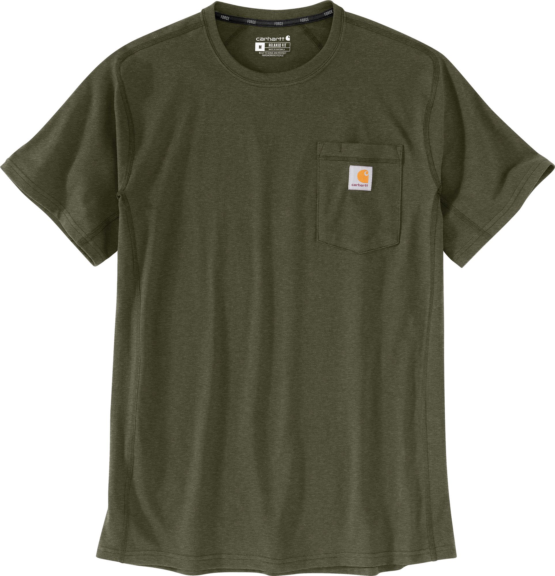 Stay cool and comfortable all day with the Carhartt Men’s Force Pocket Short Sleeve T-Shirt. Designed for casual wear, this relaxed-fit tee is crafted from soft cotton-polyester jersey knit fabric with ventilated side panels for enhanced breathability. Featuring Force® and FastDry® technologies to wick sweat and dry quickly, plus a stain-release finish, it’s the perfect blend of durability and performance for your everyday adventures.