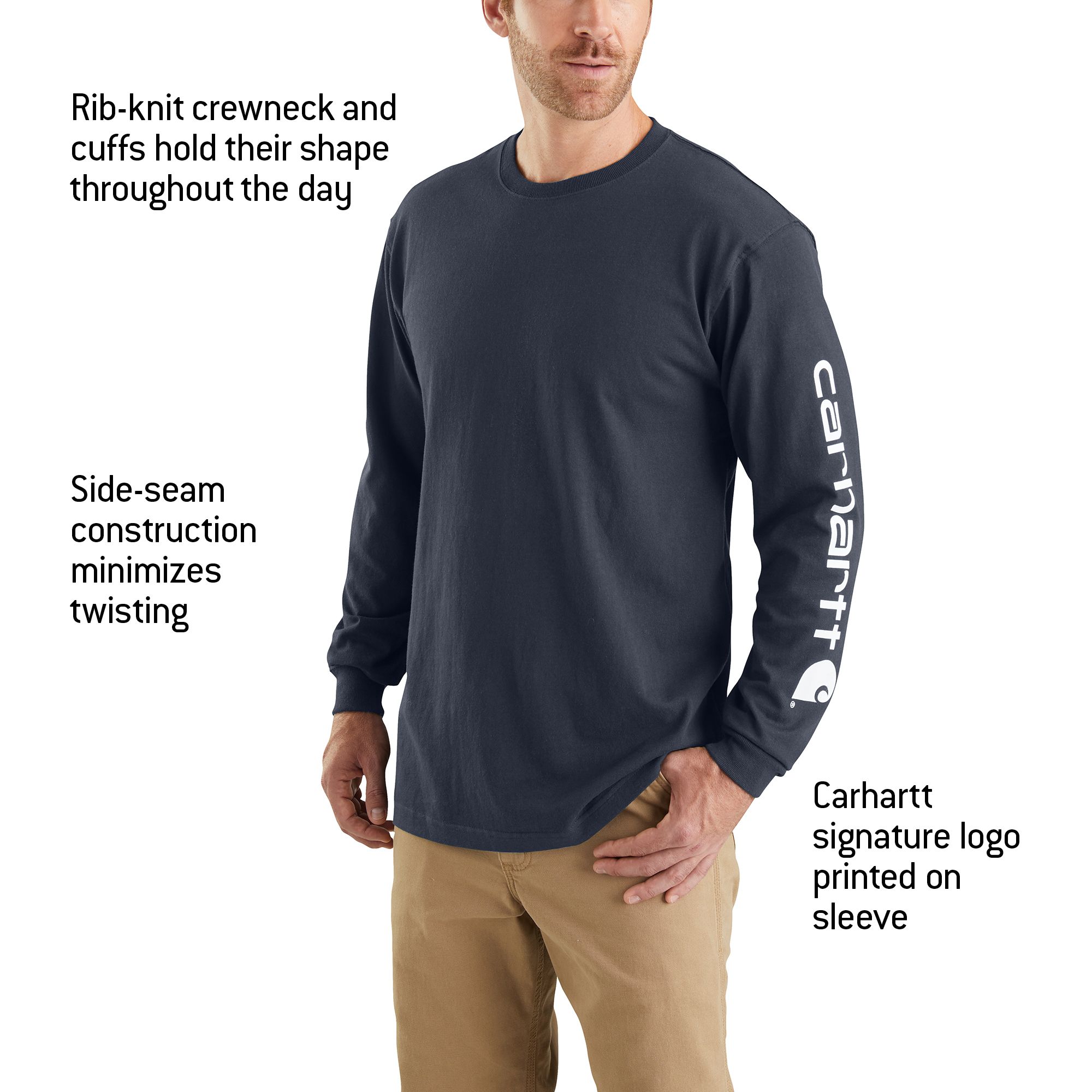 The Carhartt® Graphic Logo Sweatshirt is a long-lasting essential piece of clothing for the job site. Constructed of a 10.5-ounce cotton and polyester blend, it features an attached hood with a drawcord closure. It also has a front hand-warmer pocket and spandex-reinforced rib-knit cuffs and waistband. The Carhartt® logo is printed on the sleeve, and a logo patch is sewn on the pocket.