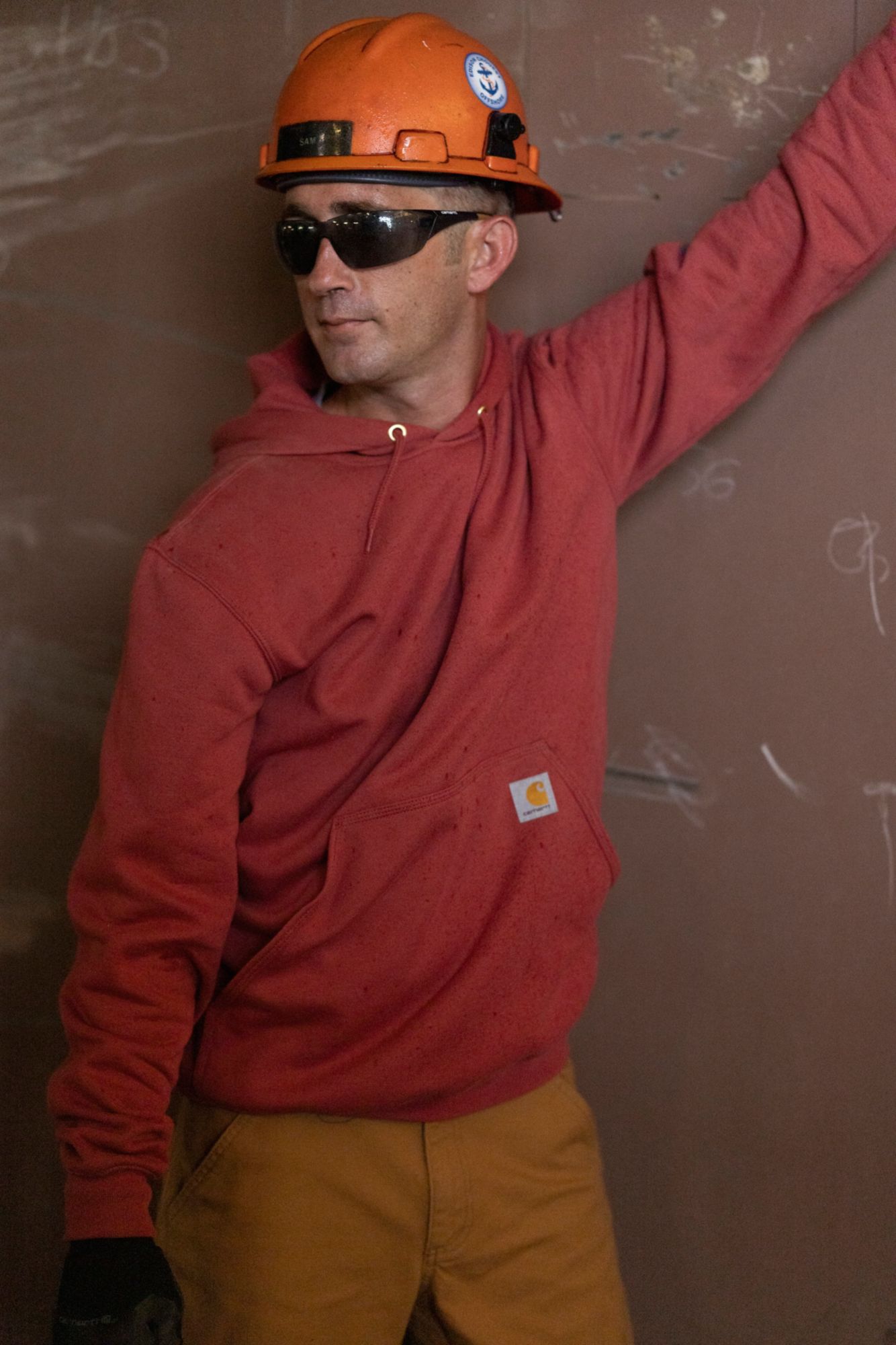 Wear the Carhartt® Men’s Midweight Sleeve Logo Hoodie while you grill your hard-earned venison. Spandex-reinforced rib-knit cuffs and waistband trap heat and allow freedom of movement. You can adjust the hoodie via the draw cord closure. Warm your hands in the front pocket. Cahartt’s logo decorates a patch on the front pocket while “Carhartt” is screen printed on the sleeve.