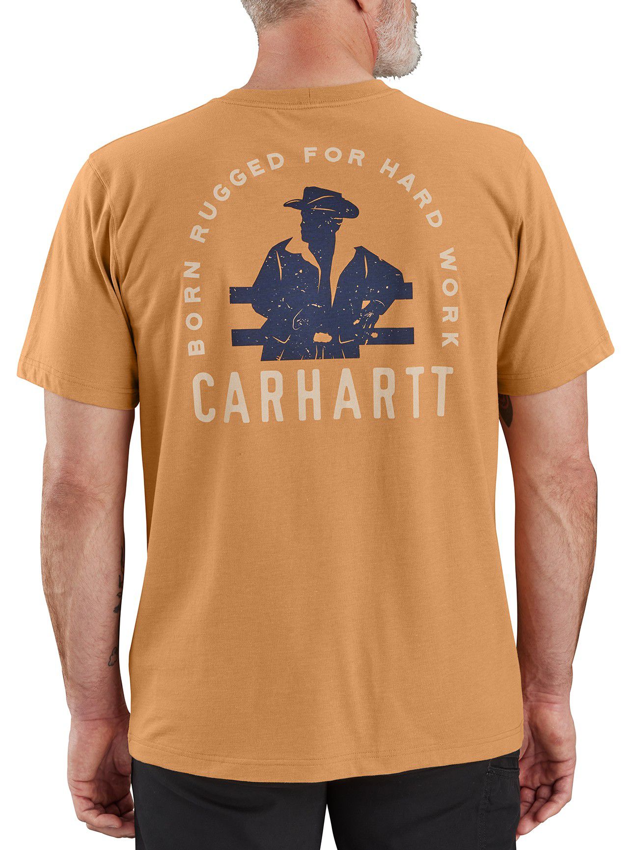 For over a century, Carhartt has produced rugged workwear to help people tackle the toughest jobs. This men's pocket t-shirt is a nod to Carhartt's legacy beginning on the American railroad.