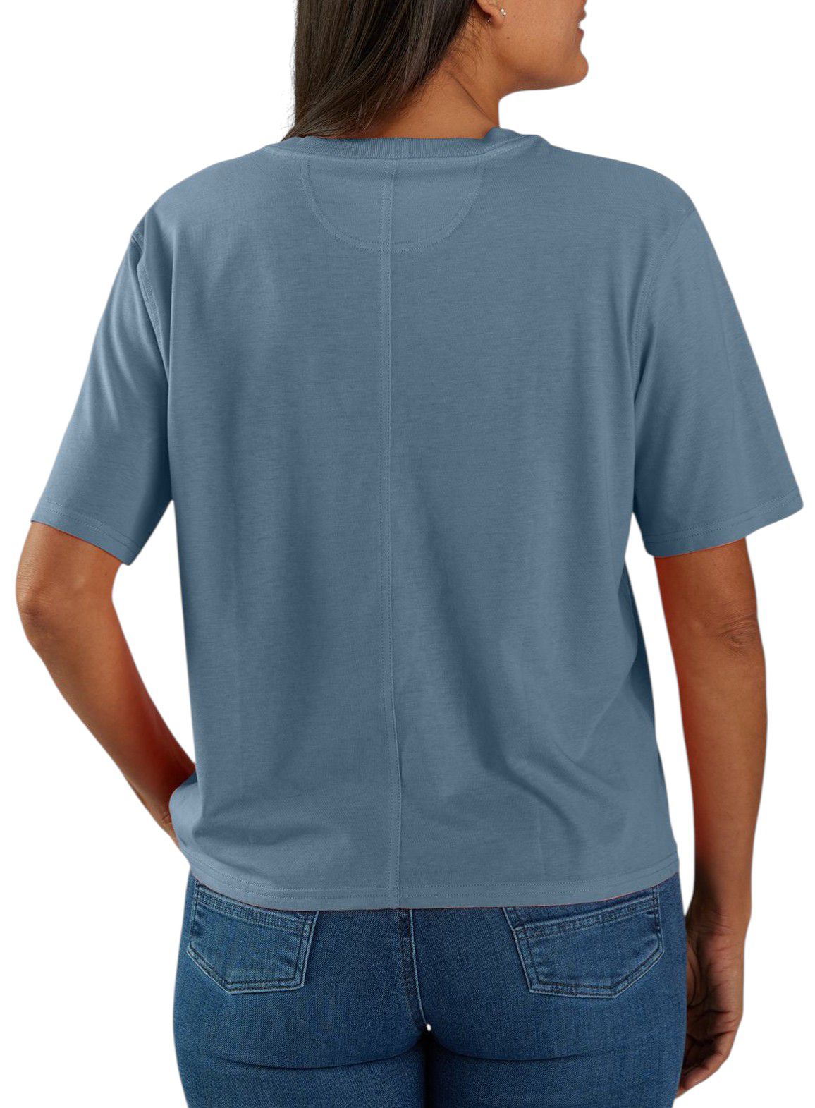 Elevate your casual wardrobe with the Carhartt Women's Boxy Fit Short Sleeve Tee. This relaxed fit tee features a classic crewneck and a convenient sewn-on chest pocket, offering both style and functionality for your everyday adventures. Crafted from a soft blend of cotton and Lyocell, it's perfect for the outdoors or a laid-back day out.
