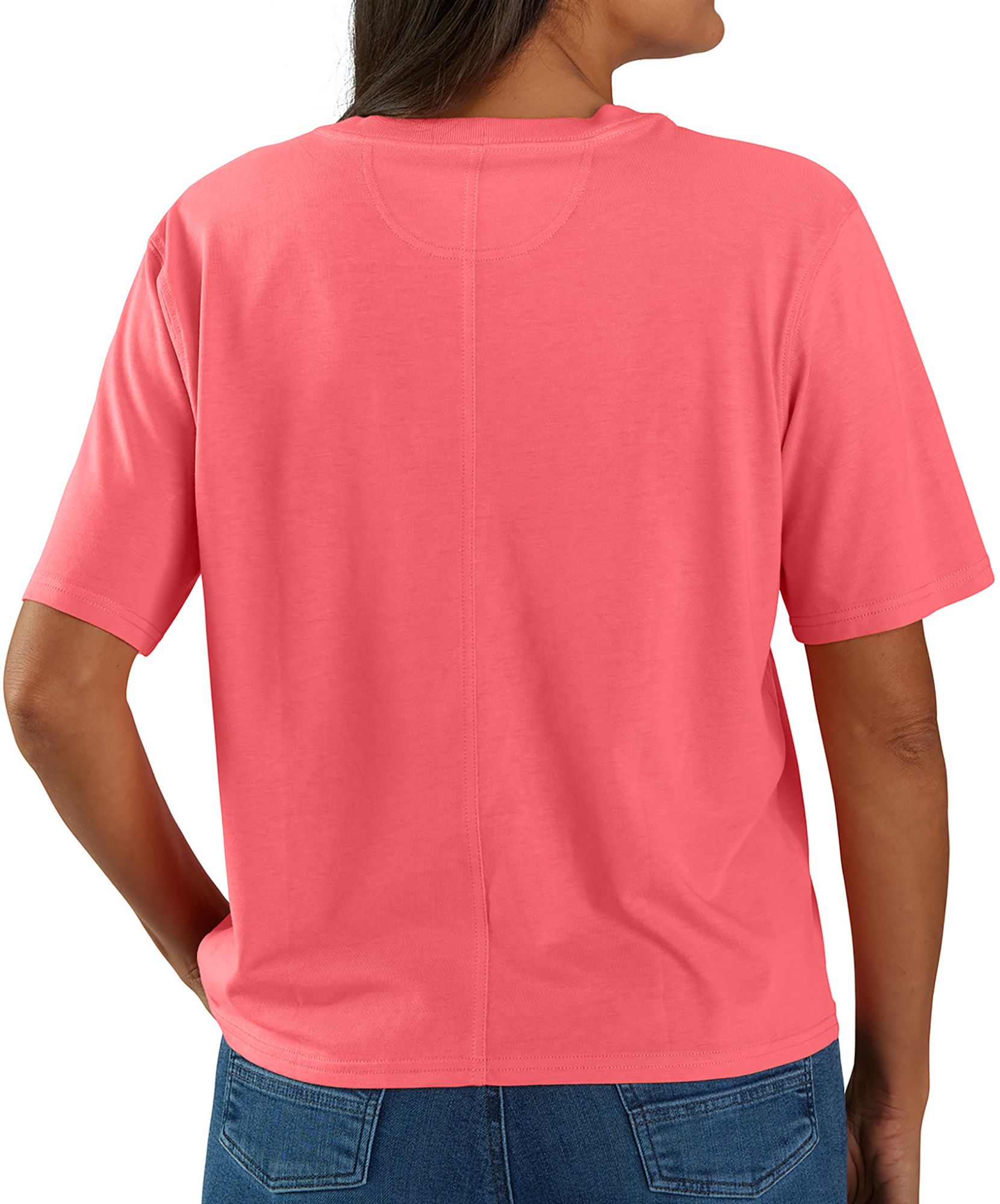 Elevate your casual wardrobe with the Carhartt Women's Boxy Fit Short Sleeve Tee. This relaxed fit tee features a classic crewneck and a convenient sewn-on chest pocket, offering both style and functionality for your everyday adventures. Crafted from a soft blend of cotton and Lyocell, it's perfect for the outdoors or a laid-back day out.