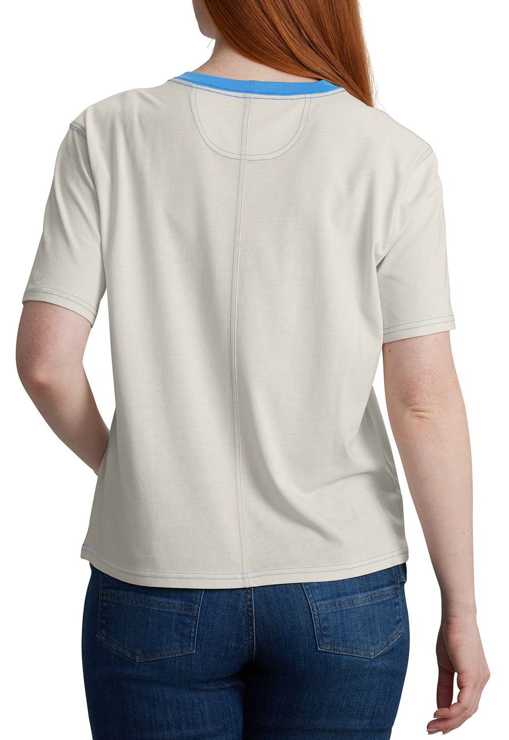 Stay comfortable and stylish in the Carhartt Women's TENCEL™ Fiber Ringer Short Sleeve Graphic Tee. This lightweight, loose-fitting shirt features TENCEL™ Lyocell fibers derived from sustainable wood sources and a rib-knit crewneck that holds its shape throughout the day. With a classic Carhartt graphic on the chest and a tagless neck label for added comfort, this tee is perfect for any casual outing.