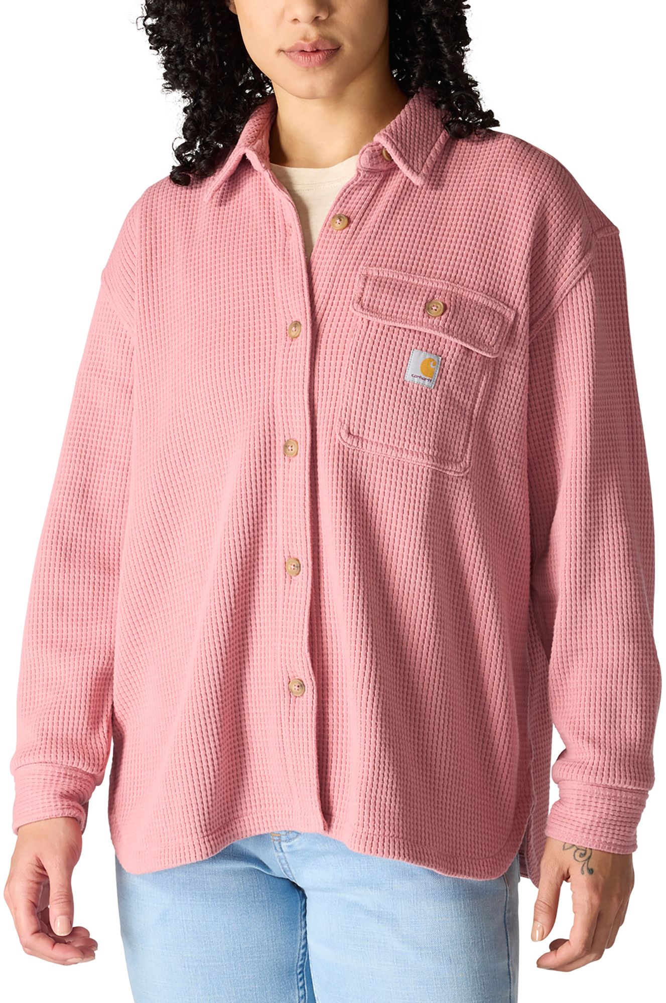 Made with an oversized fit for layering on cold days, this women's waffle knit shirt balances warmth and breathability. The heavyweight cotton blend has a soft feel and everyday durability.
