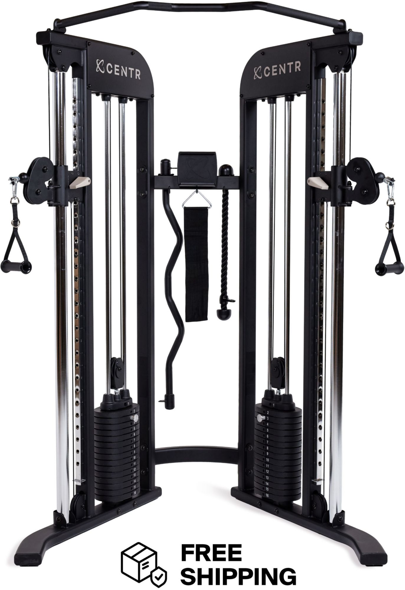 Fuel your everyday with a versatile home gym that makes getting in a dynamic full-body workout easier and more convenient than ever. Suitable for any level, this innovative cable machine can be used solo or with a partner at the same time. Centr 2 is equipped with two 165 lb weight stacks (330 lb in total), a built-in pull up bar, a phone/tablet holder, and 30 vertical swivel pulley positions. The unique design of the pulley system delivers an extended range of motion, giving you all the cable you need for any dynamic movement. This commercial-grade pulley system provides a smooth, frictionless feel with every push and pull. The Centr 2 is designed for results, access customized Centr 2 workout programs on the Centr app.