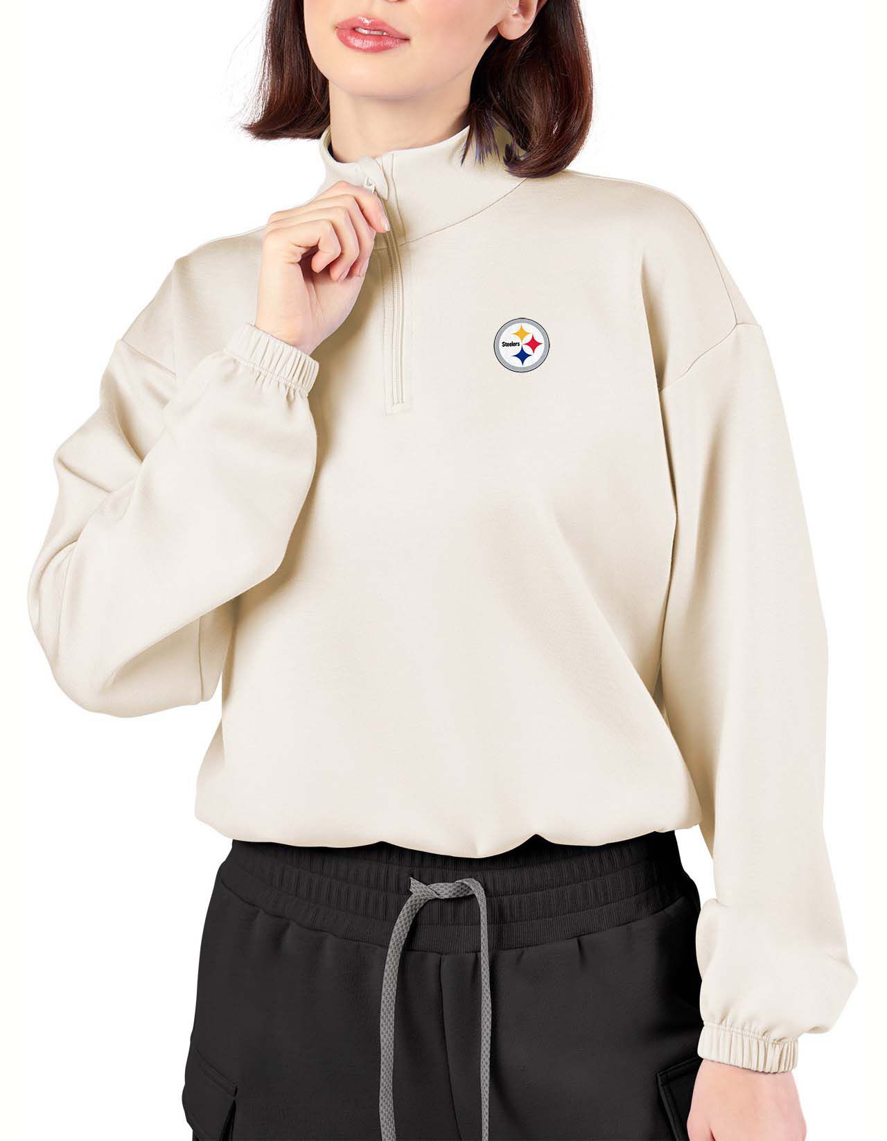 Certo Women's Pittsburgh Steelers Bone Cropped 1/4 Sleeve Shirt