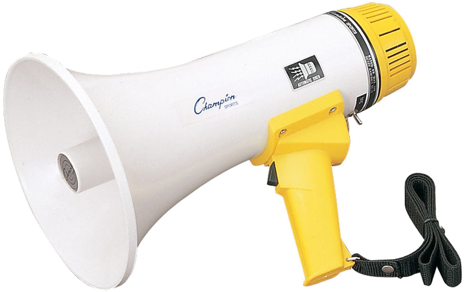 Make your voice heard with the Champion® 8 Watt Sports Megaphone. Ideal for sporting events or large public crowds, the megaphone adjusts from 8 to 12 watts and projects at an 800 yard range. The portable megaphone features a powerful siren, so you can get the attention of the crowd for an alert or to let athletes know the event has begun. Requires six AA batteries for operation.