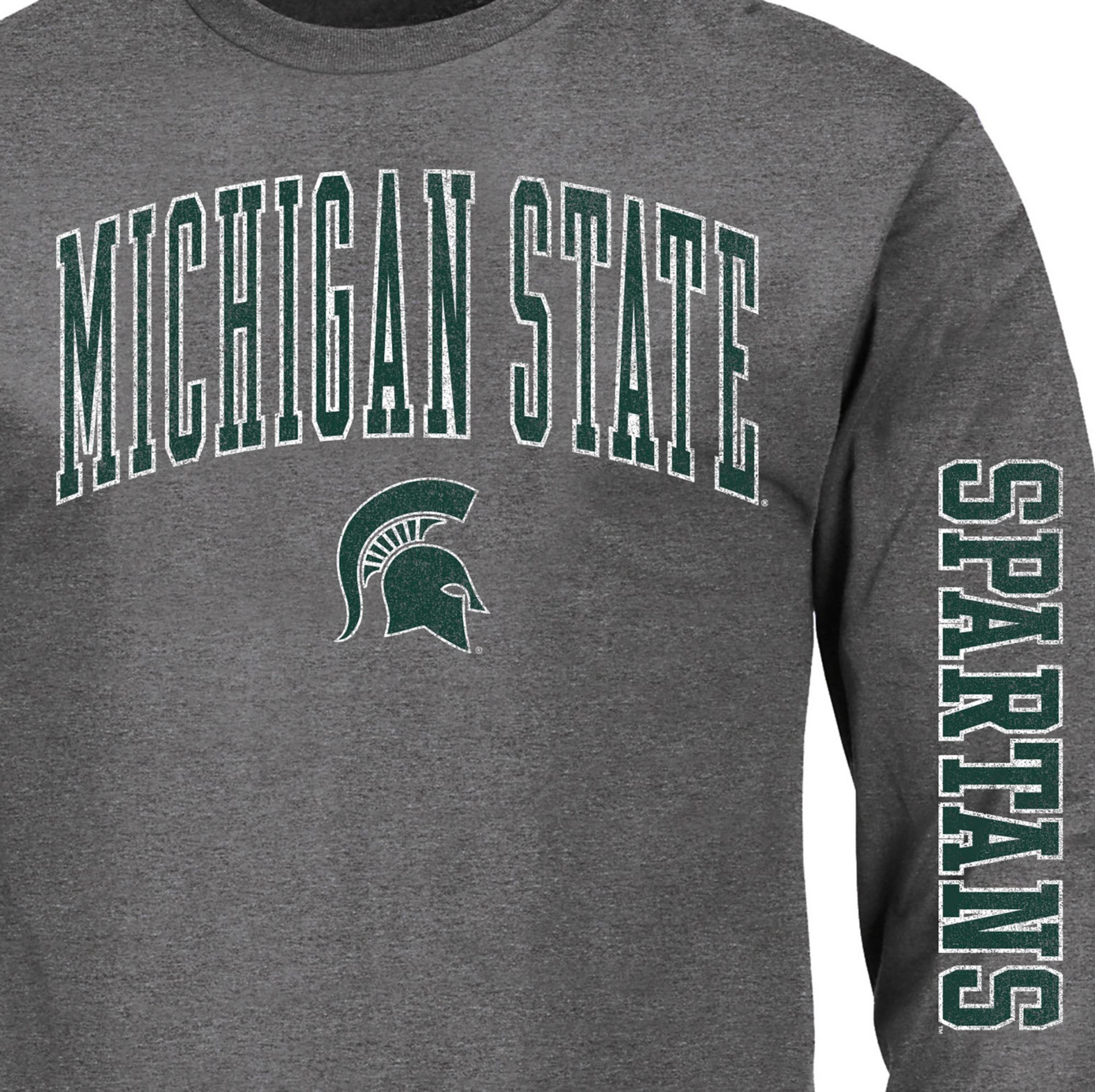 Champion Men's Michigan State Spartans Heather Grey Big & Tall 2 Hit Long Sleeve T-Shirt