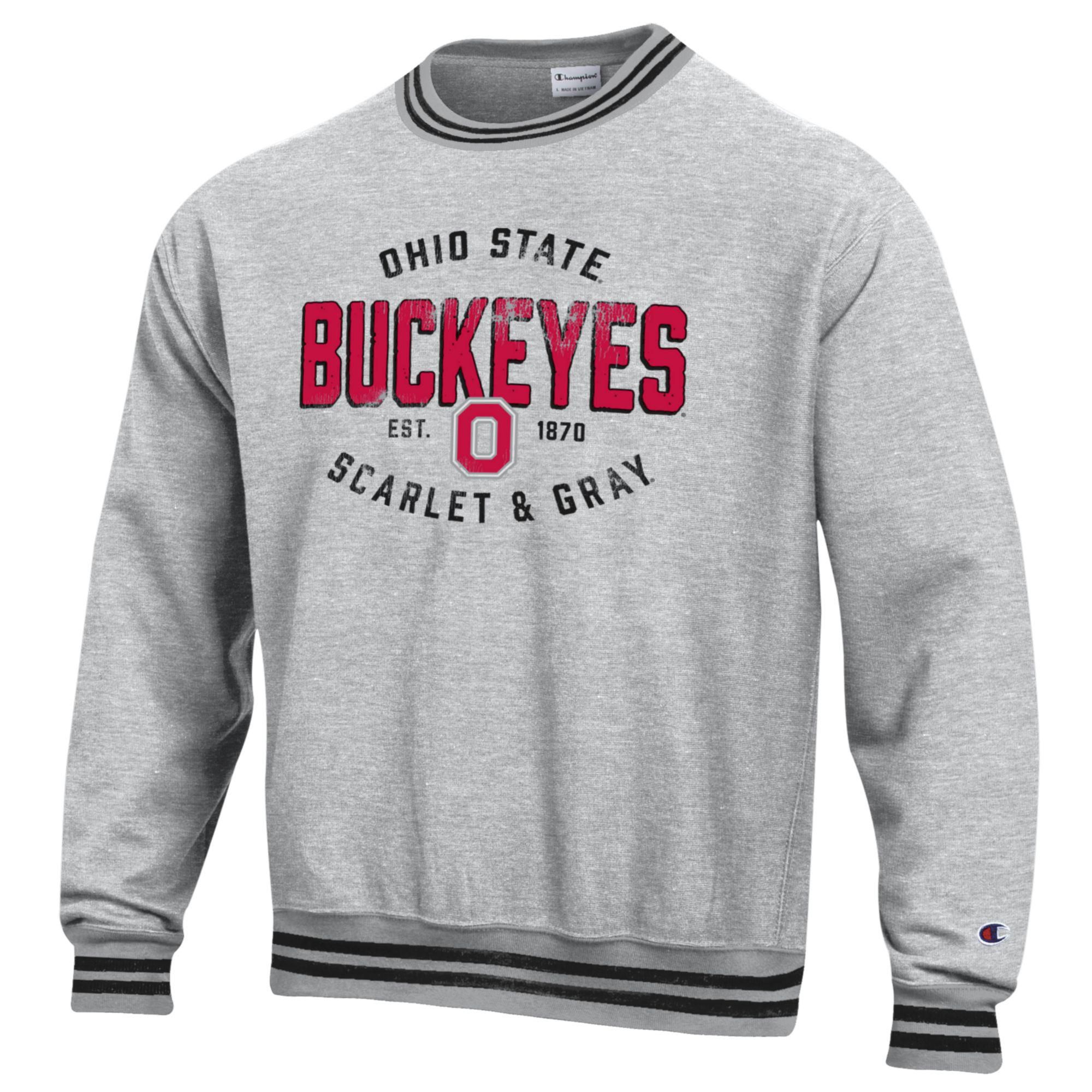 Champion Men's Ohio State Buckeyes Reverse Weave Yarn Dye Rib Crew Pullover Sweatshirt