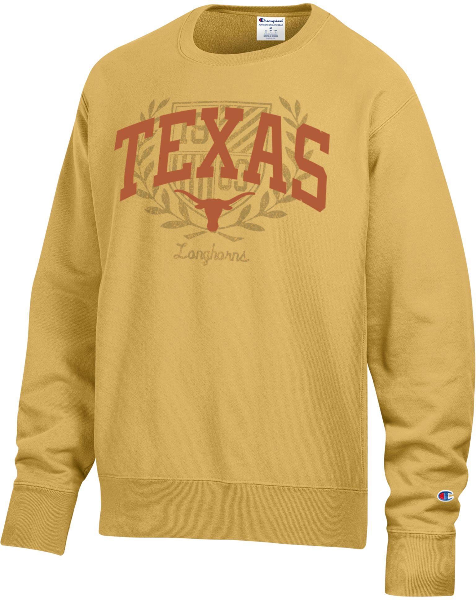 Champion Men's Texas Longhorns Gold Garment Dyed Reverse Weave crew Pullover Crew Sweatshirt