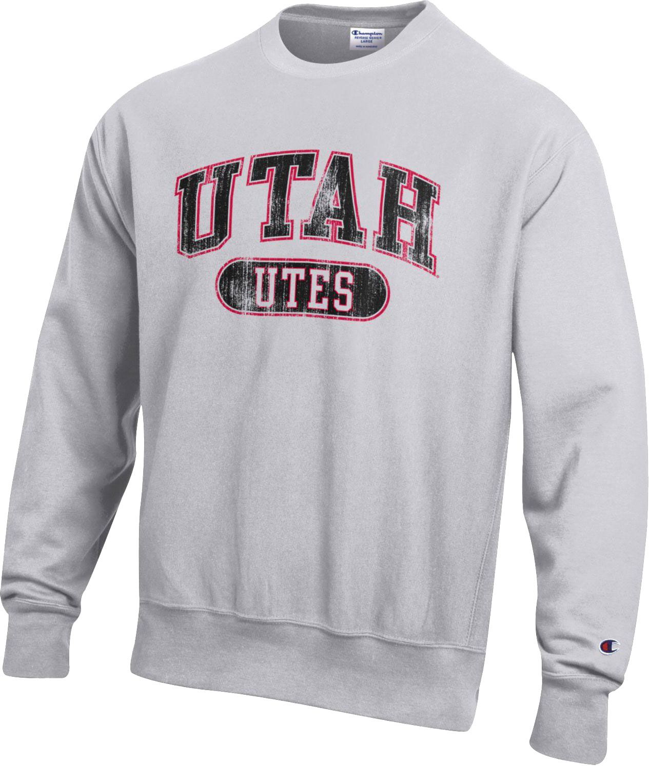 Champion Men's Utah Utes Grey Reverse Weave Crew Pullover Sweatshirt