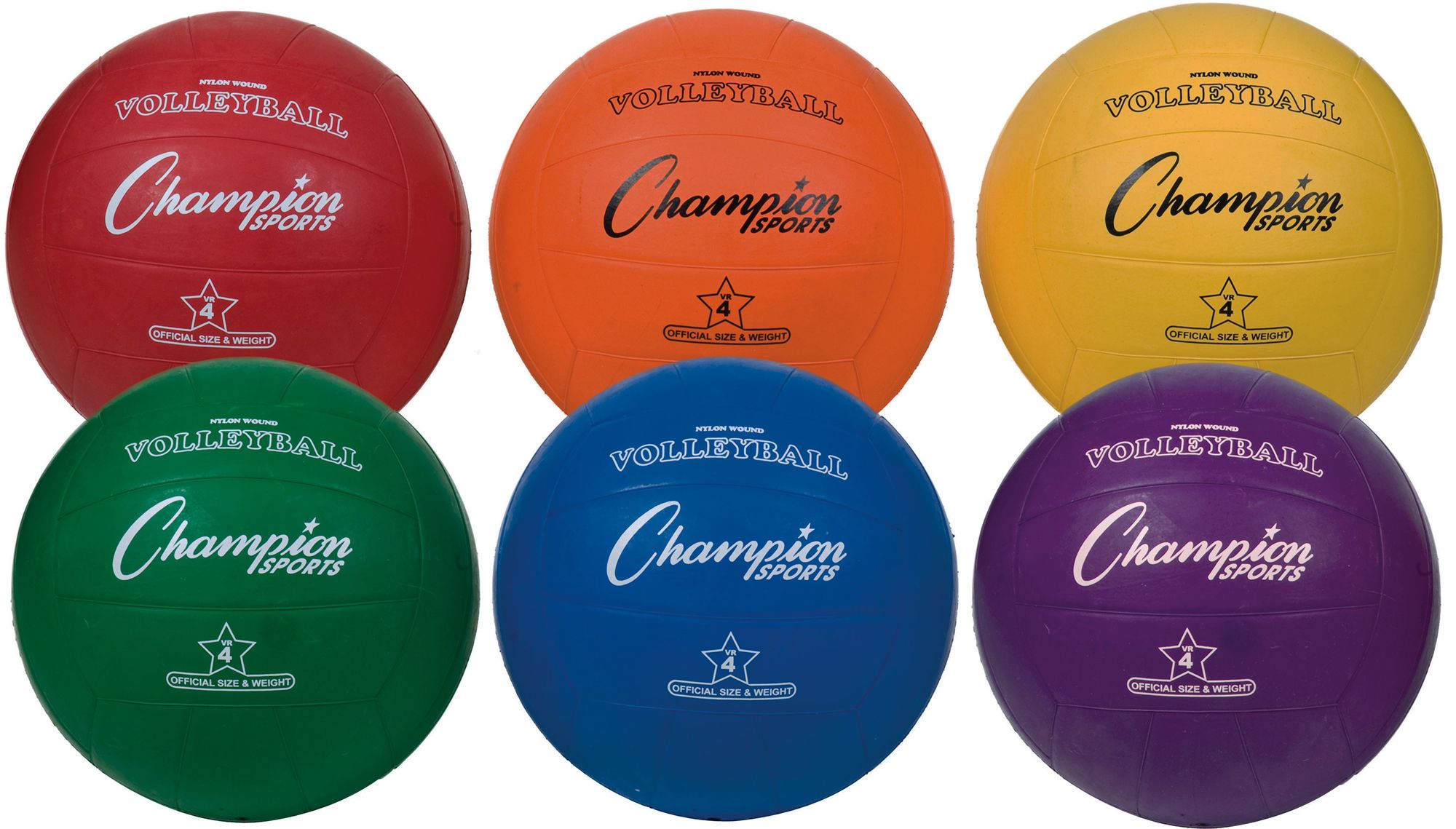 Dig match point from the back row next game with the Champion® Official Size Rubber Volleyball Set. Add some color to your game with the set of six official size rainbow volleyballs from Champion®. The durable rubber cover provides you with perfect control while a pure nylon butyl bladder keeps you comfortable for every bump. Take over the court with the Champion® Official Size Rubber Volleyball Set.
