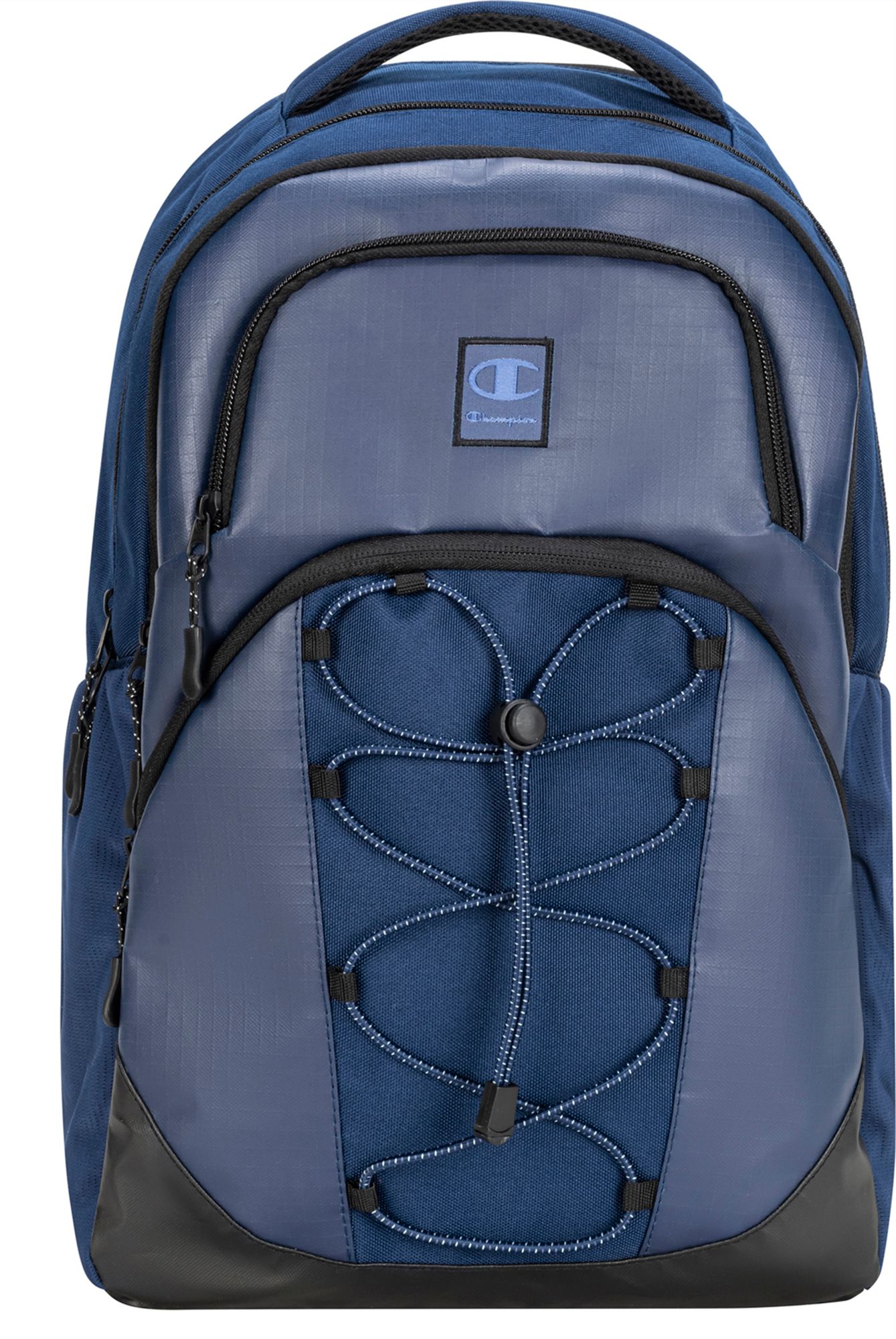 Equipped with adjustable padded straps, an interior padded laptop sleeve, and coated bottom panels, the CHAMPION Summit Backpack keeps you comfortable and organized, and your gear protected. There’s a media pocket, item organizer pockets, exterior zip pockets, and stretch mesh water bottle pockets. (There’s a theme here—pockets!) Classic in design and dynamic in detail, the CHAMPION Summit Backpack has all the compartments needed to carry your essentials. Front bungee detail is a great way to clip in any extras.
