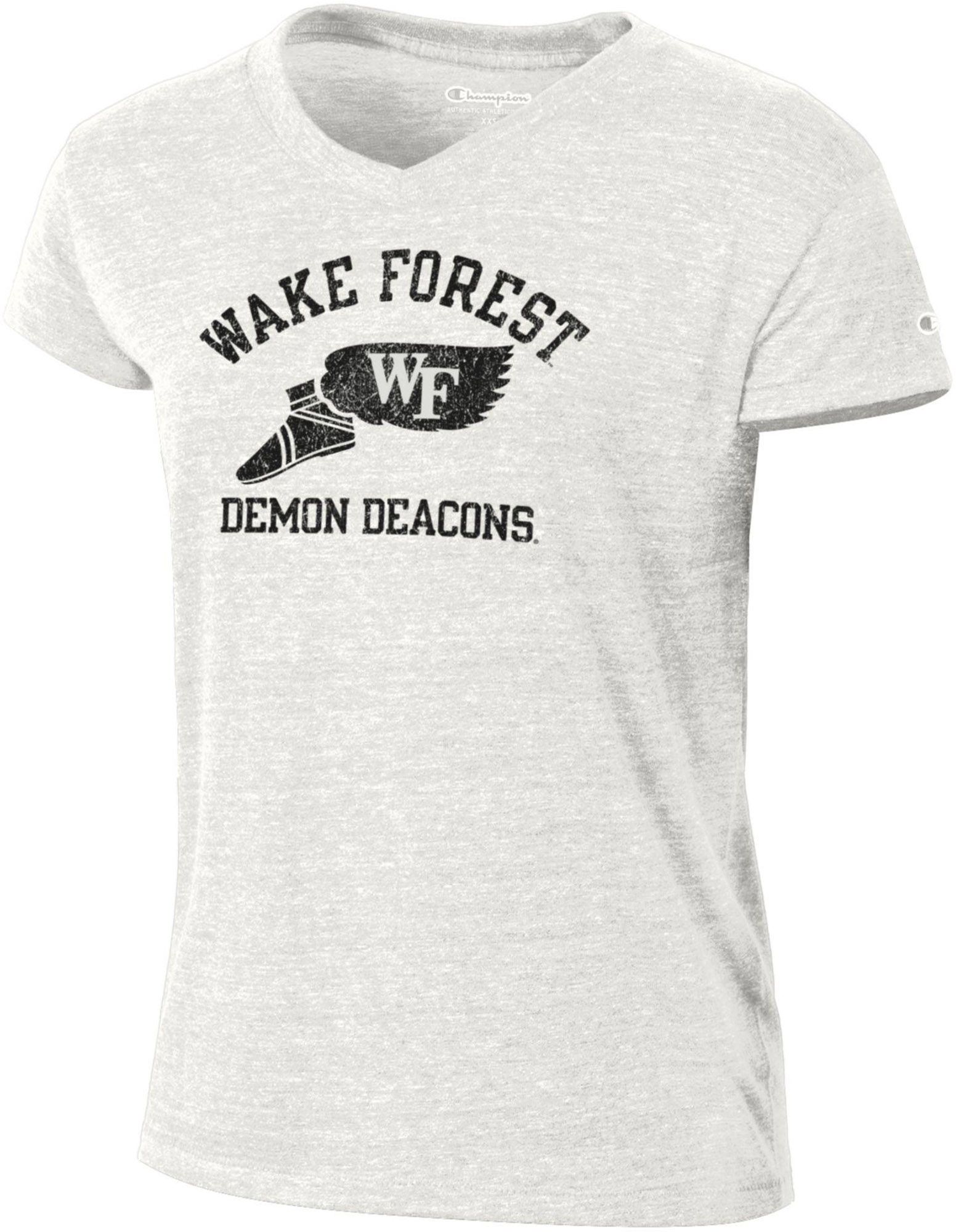 Champion Women's Wake Forest Demon Deacons White Triblend V-Neck Short Sleeve T-Shirt