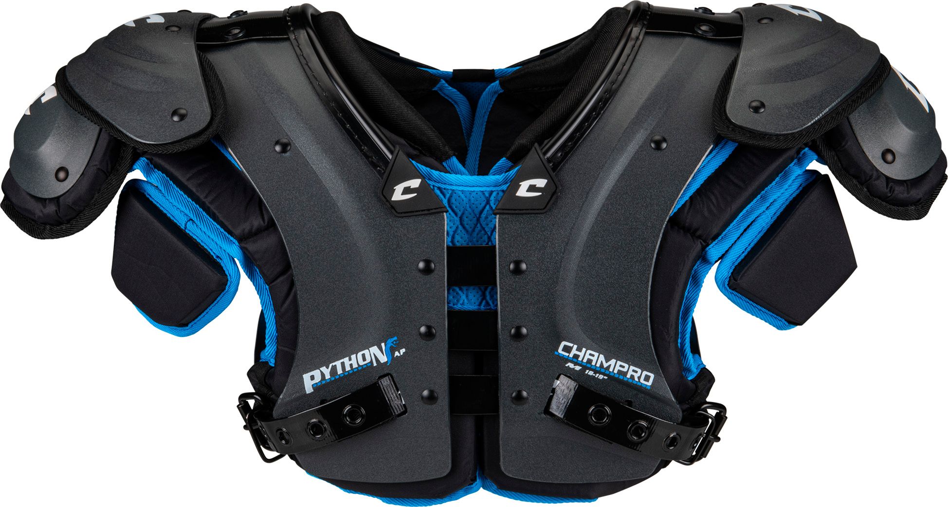 The Python All-Purpose Shoulder Pad is designed for versatility across multiple positions. Its low-profile flat pad features adjustable deltoid pads, a 360 Yoke, and removable shoulder channels for a customizable fit. Equipped with a 1 belt-and-buckle system and 5/8 thick Air Management lining, it ensures comfort and protection. Redundant foam shoulder channels and a swivel front enhance mobility and impact resistance.