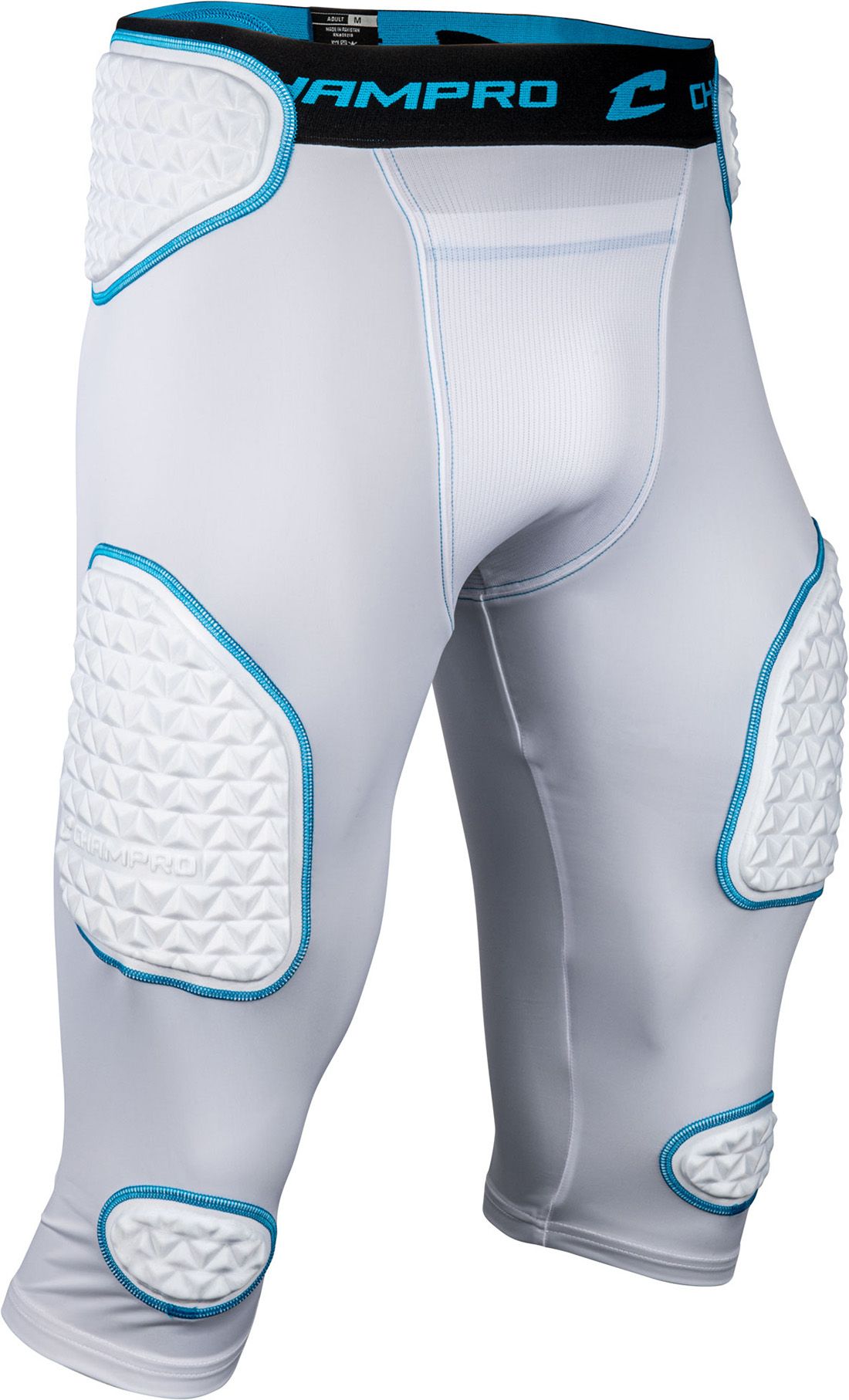 Made with 85% polyester and 15% spandex compression fabric, this design ensures a comfortable yet secure fit. The 83% polyester and 17% spandex mesh inserts add breathability, while the integrated, molded pads offer full coverage without limiting movement. Featuring seven pads—two hip, two thigh, two knee, and one tail—it provides optimal protection. An integrated cup pocket adds extra convenience for athletes.