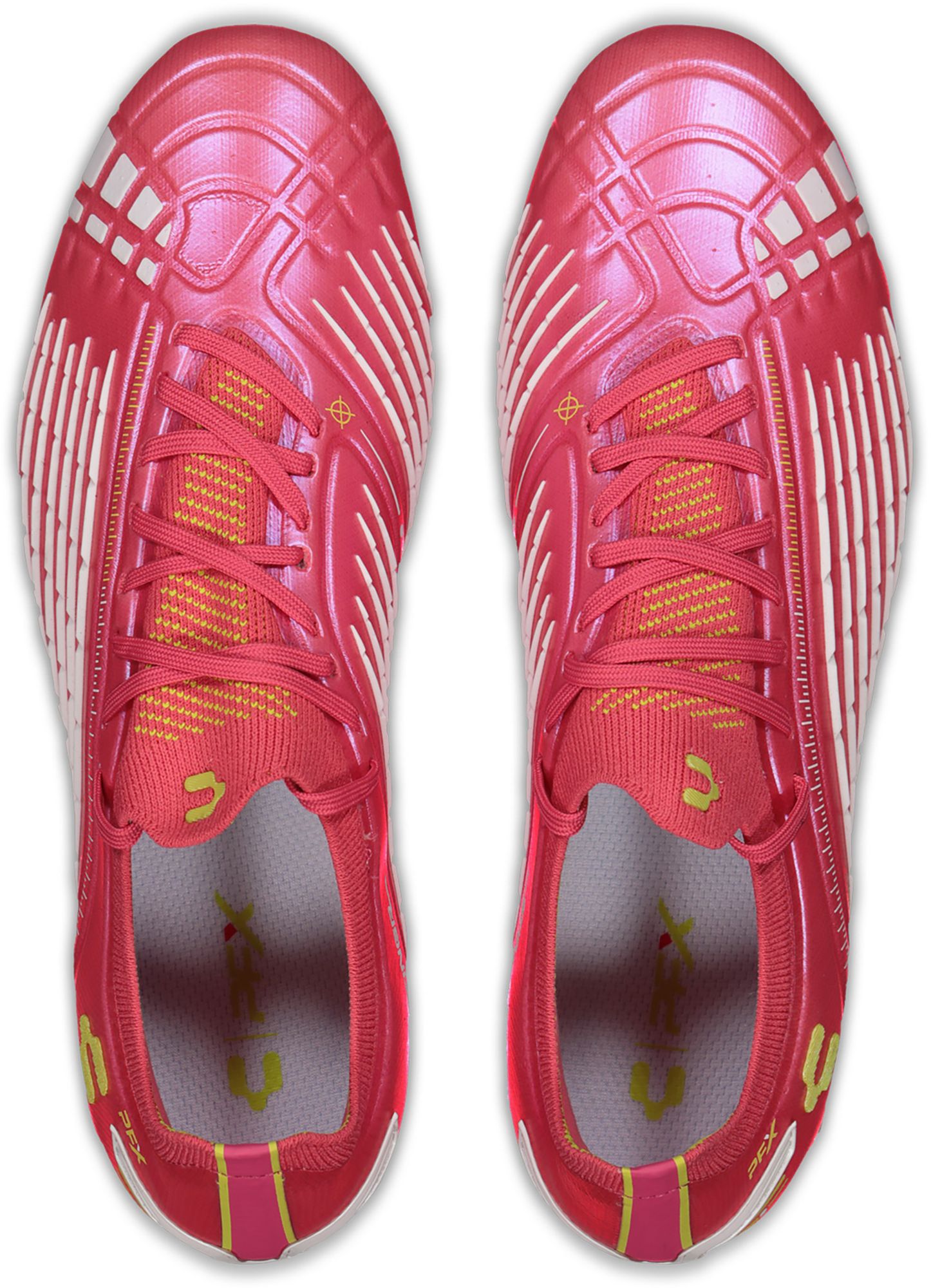 The Stinger PFX is all about power and control. This cleat features PWR Ridge Technology and external reinforcements that will give you the support and power you need to control your game. The MotionKnit upper provides a seamless comfortable contoured fit allowing for a full range of motion and a natural feel on your foot. The Dynamic Heel Technology paired with the external counter frame provides rigid heel support for quick directional changes and acceleration on the pitch. The Sweet Spot target gives you the precise location of where to strike the ball to maximize the power of your shot. Our all-new Monarch outsole is constructed to the anatomical tendons on the bottom of a human foot. This design gives you stability, comfort, and control with every stride you take on the pitch. The rotational studs allow you to change directions quick and with ease, while providing optimal traction on all playing surfaces.